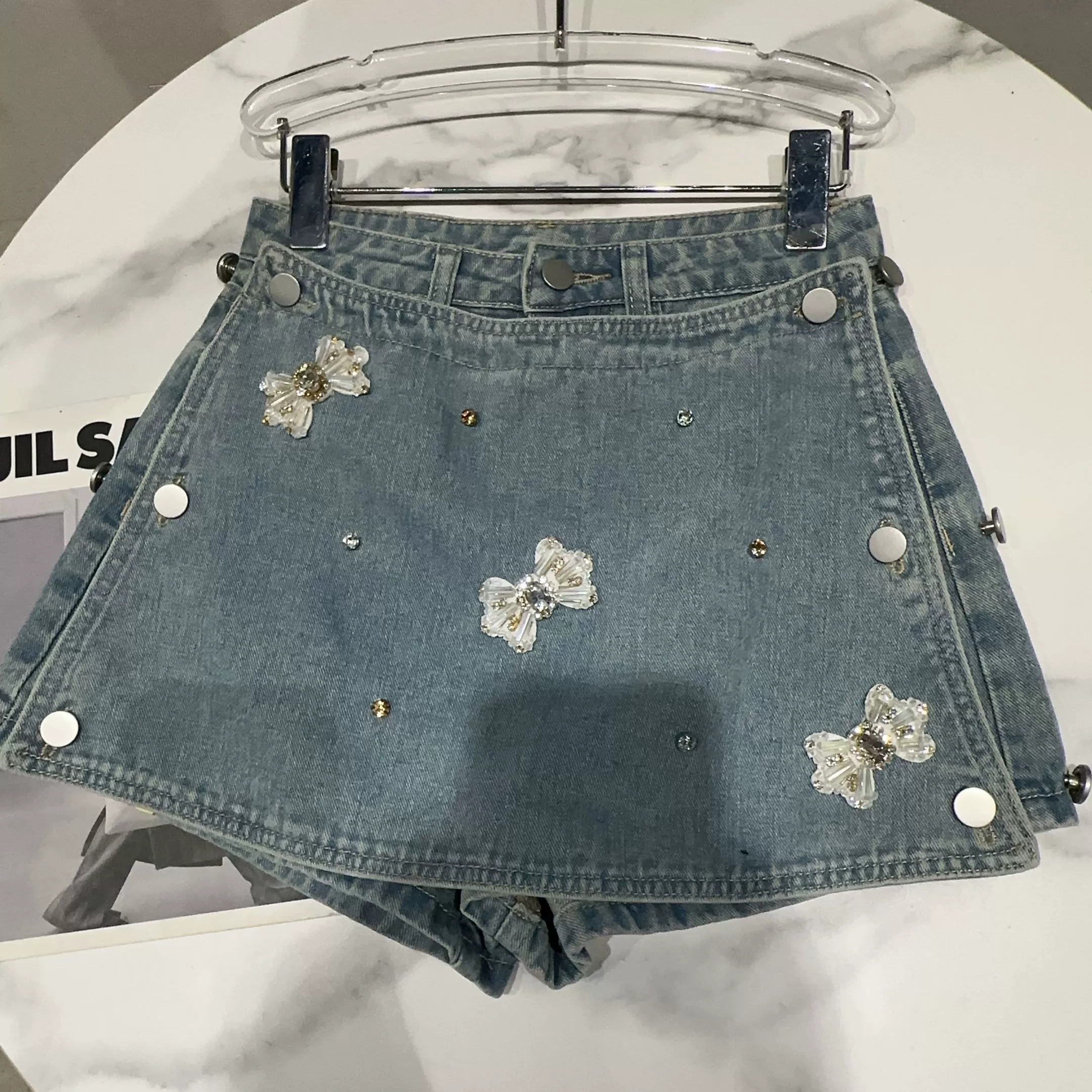 Internet celebrity temperament rhinestone three-dimensional butterfly button skirt