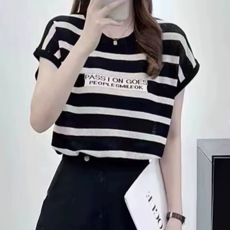 Internet celebrity thin sleeveless slimming round neck striped sweater