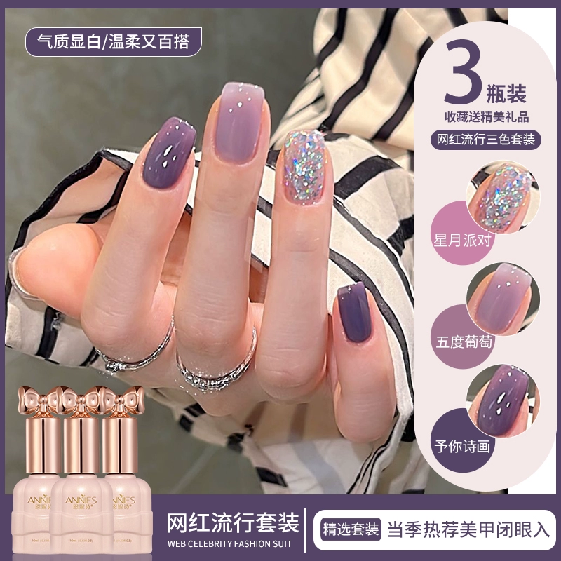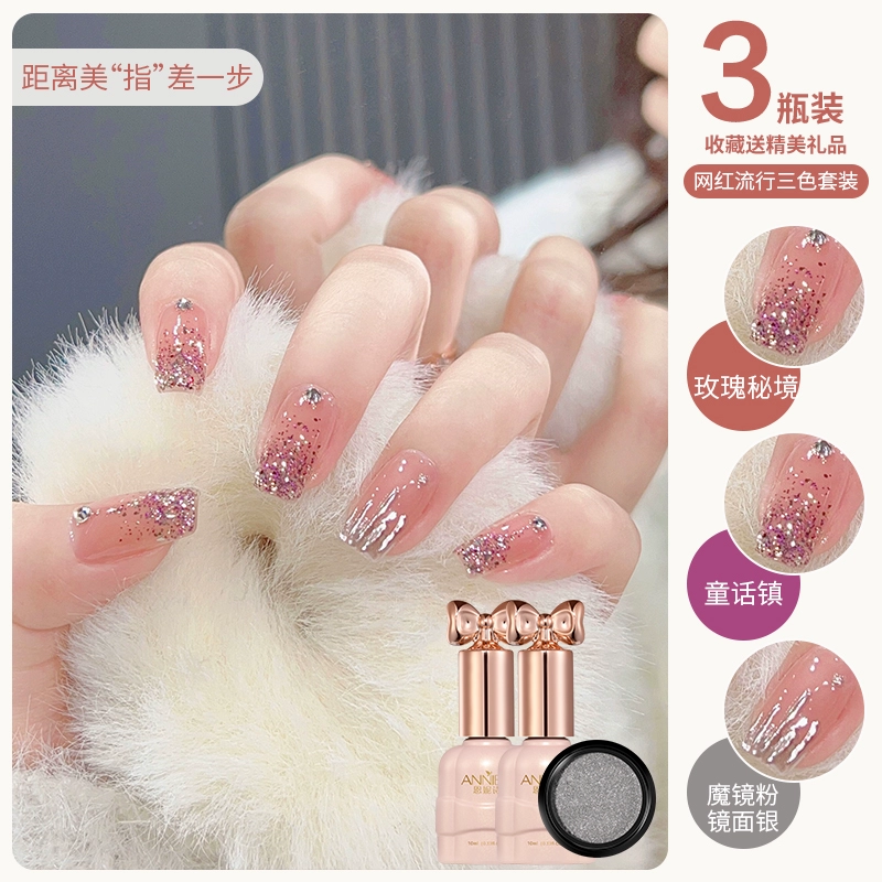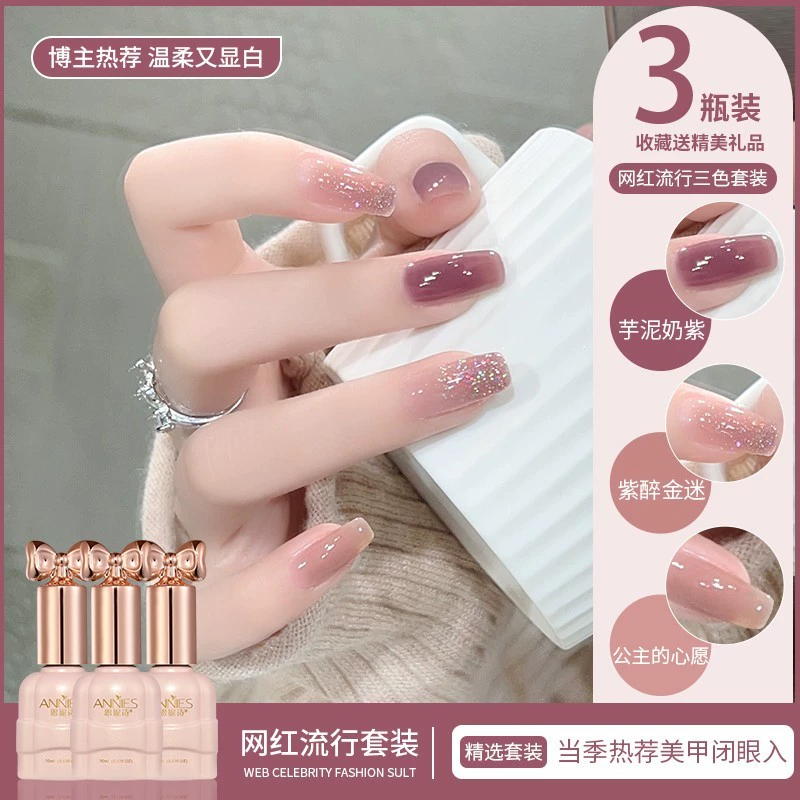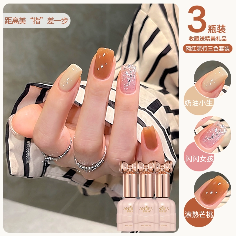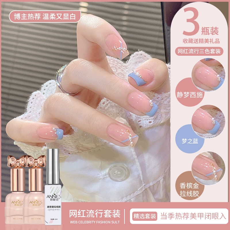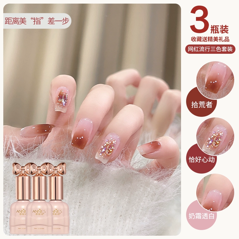Internet celebrity transparent nude color popular whitening full set of nail polish glue