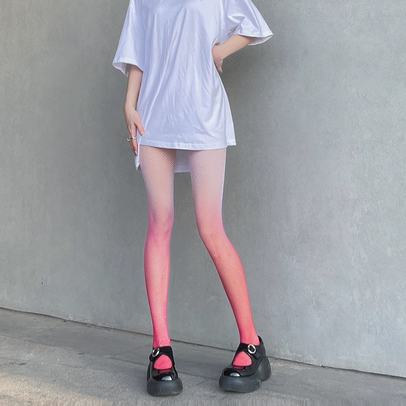 Internet celebrity transvestite gradient color hot diamond women's stockings