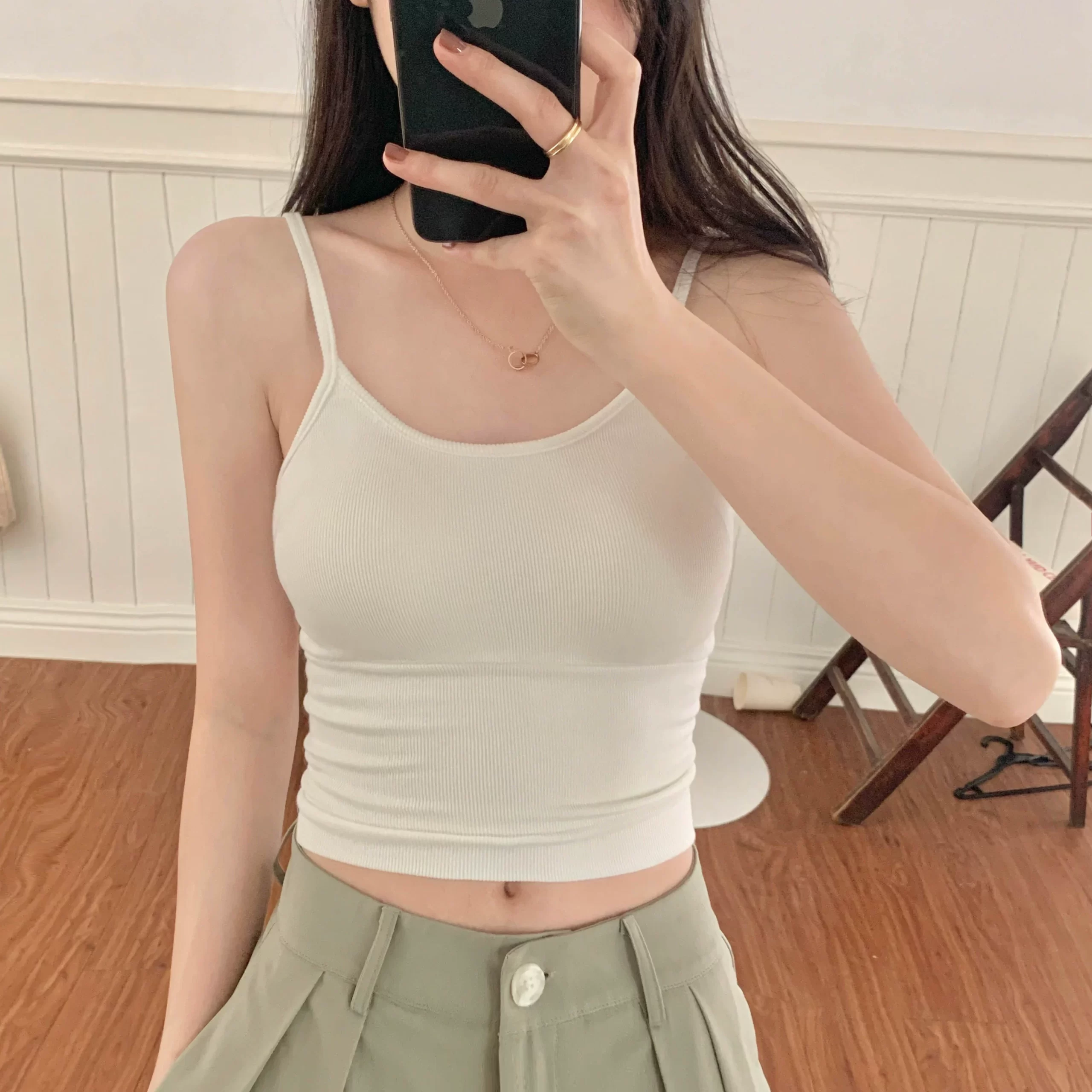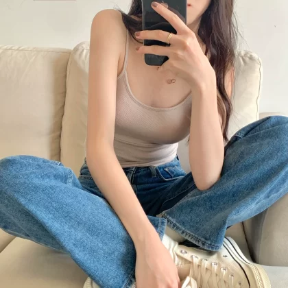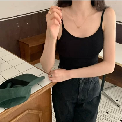 Internet celebrity U-neck elastic slim bottoming top with small suspenders