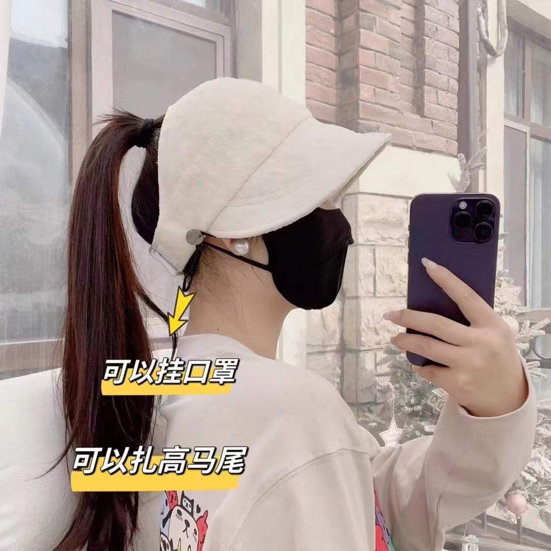 | nameOriginal | Internet Celebrity Upgraded Sunscreen Empty Top Cap Women's Summer Face Showing Small Breathable Buersucker Ponytail Cap |