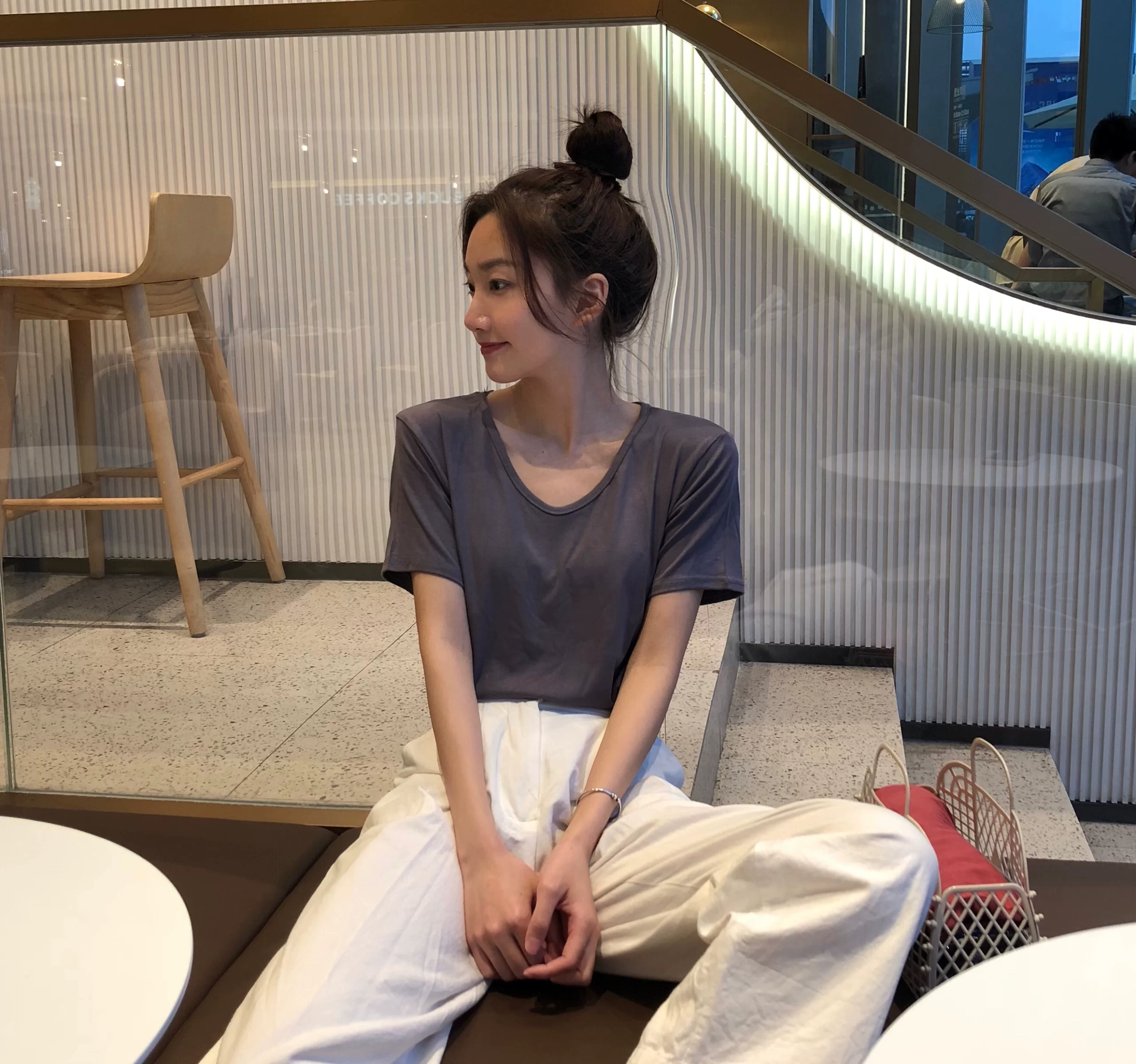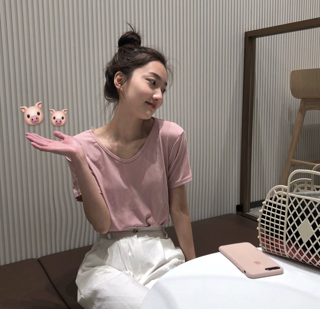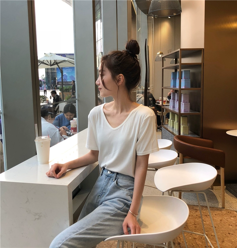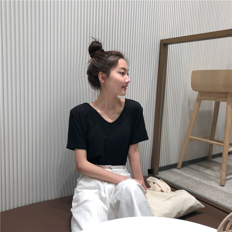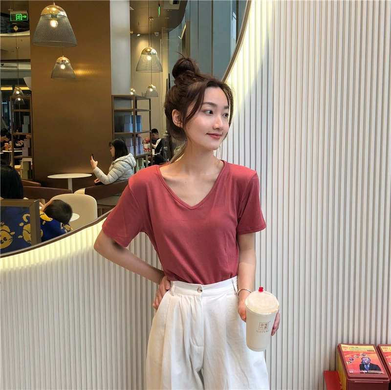 Internet celebrity V-neck summer dress Korean style basic ins short sleeves