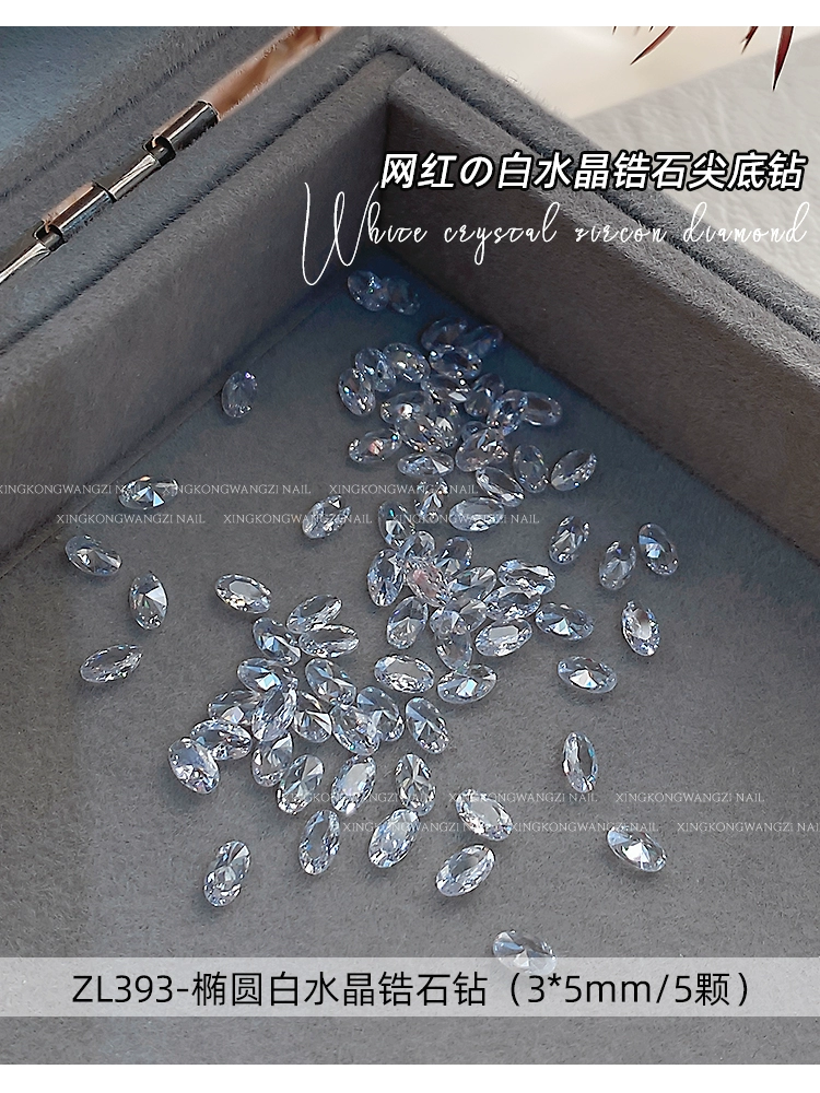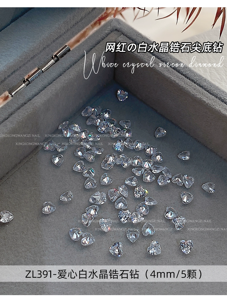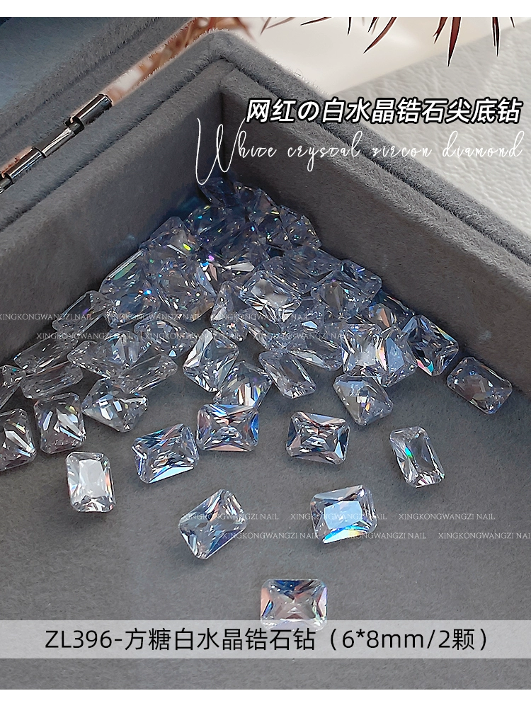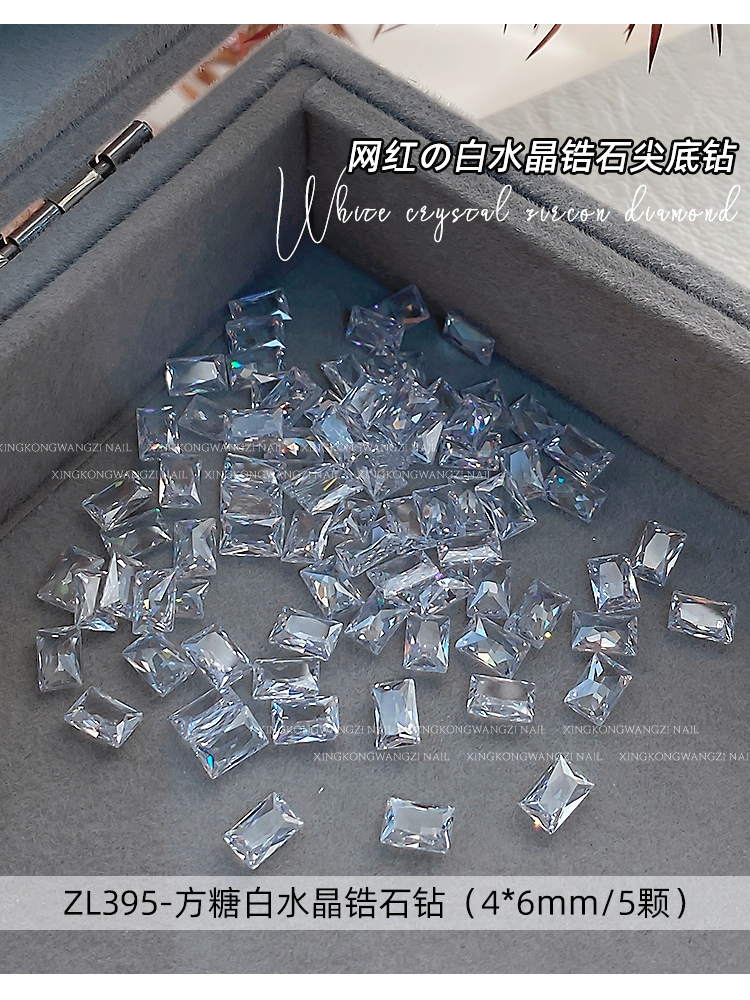 Internet celebrity white crystal zircon manicure tip diamond 2024 new style explosive round fat sugar cube love nail decoration