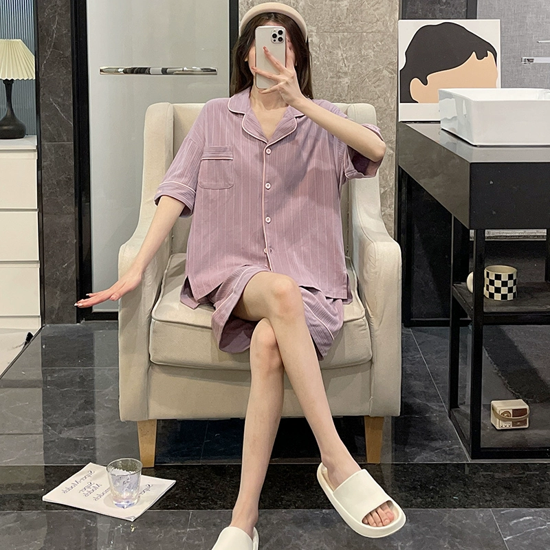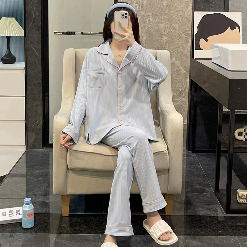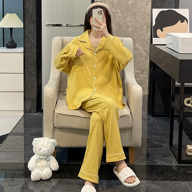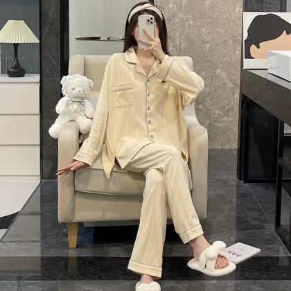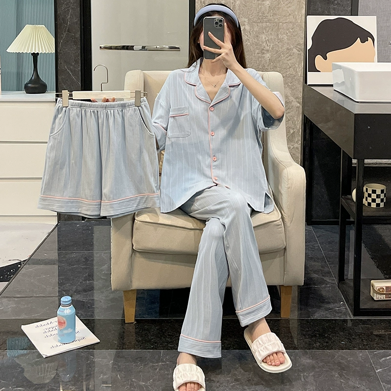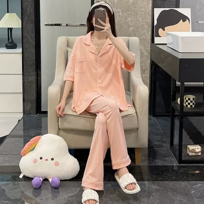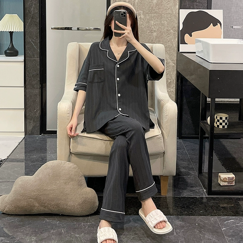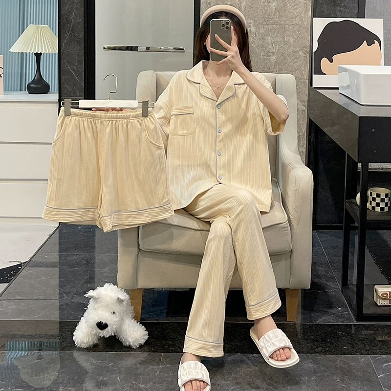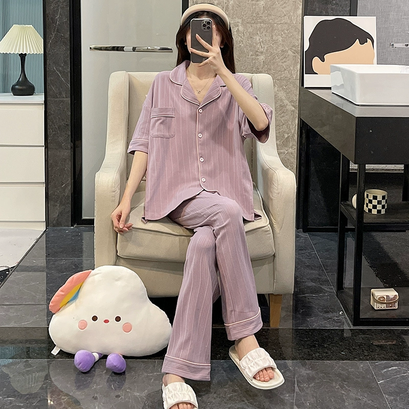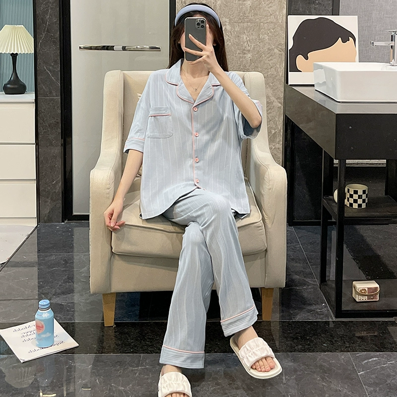 Internet celebrity women’s pure cotton suit short-sleeved long pants off-white pajamas