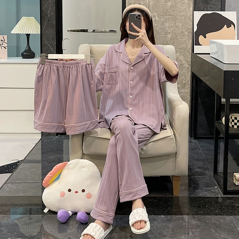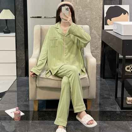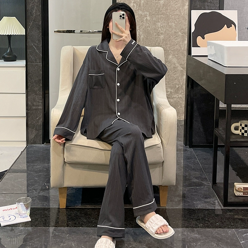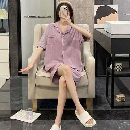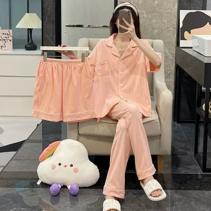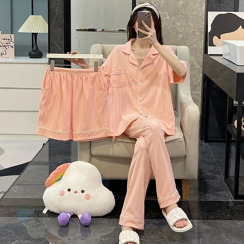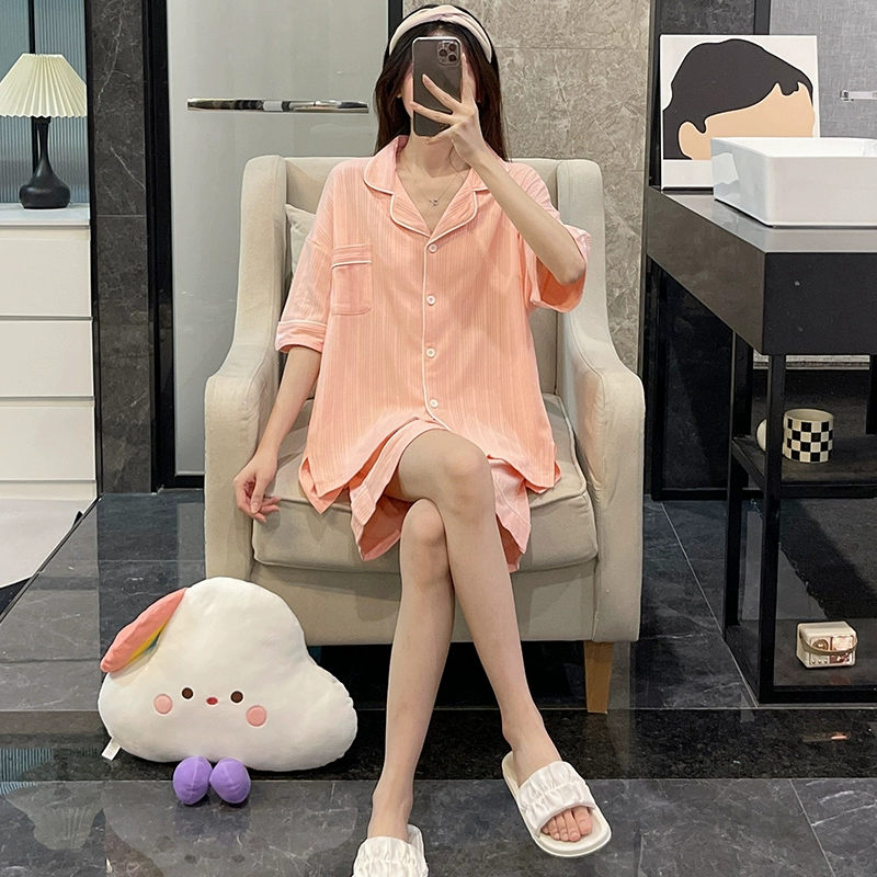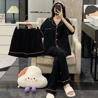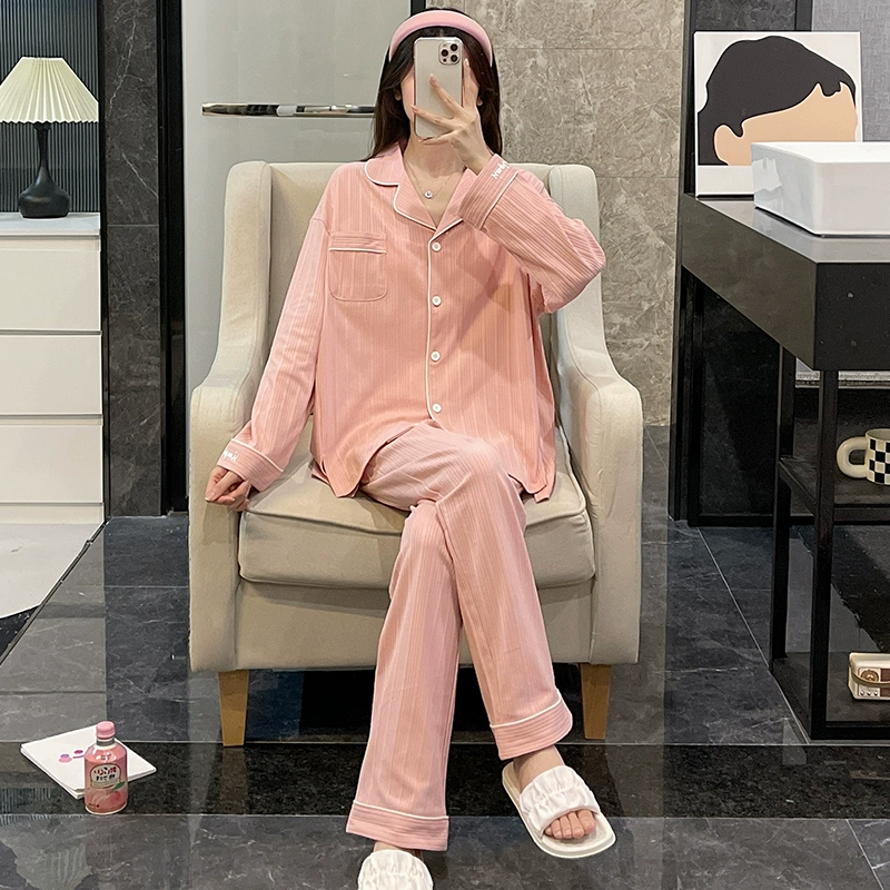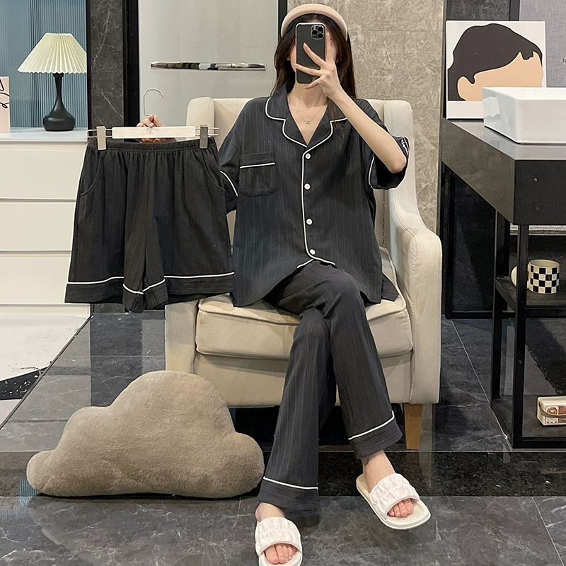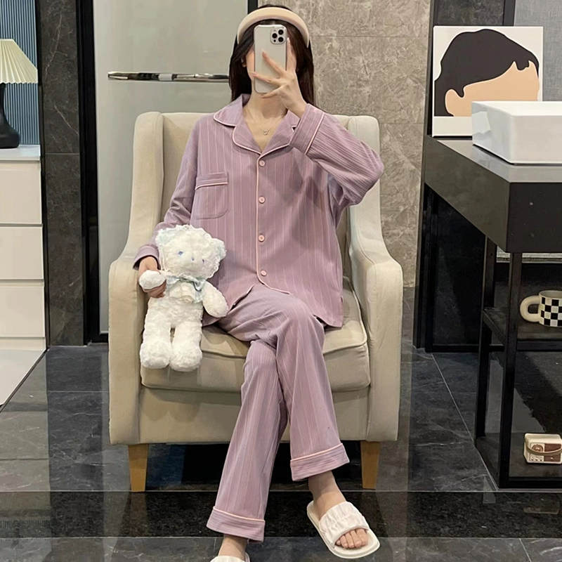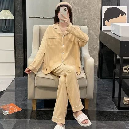 Internet celebrity women’s pure cotton suit short-sleeved long pants off-white pajamas