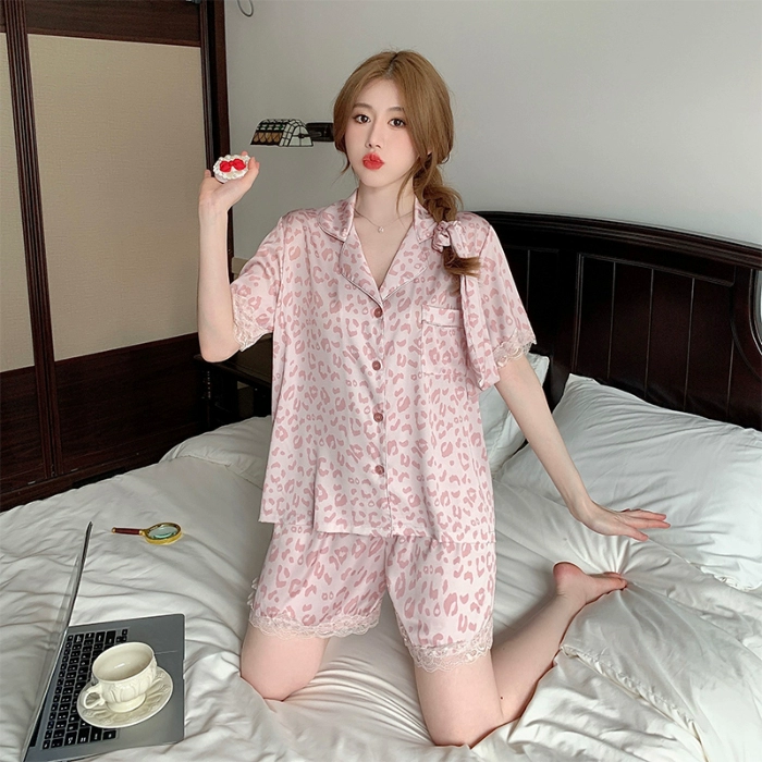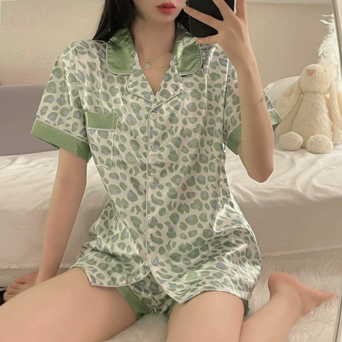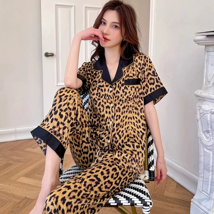 Net Red Women’s Short -sleeved Leopard Advanced Silk Pajamas