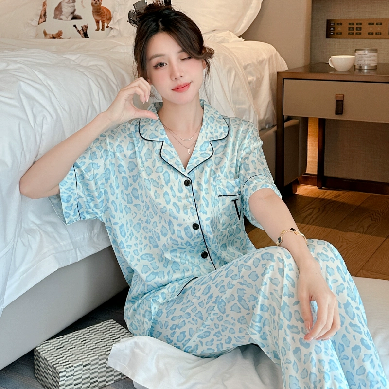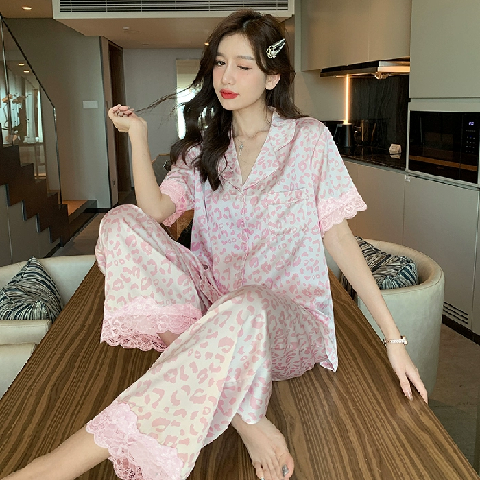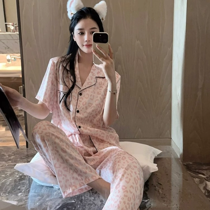 Internet celebrity women's short-sleeved leopard print high-end silk pajamas