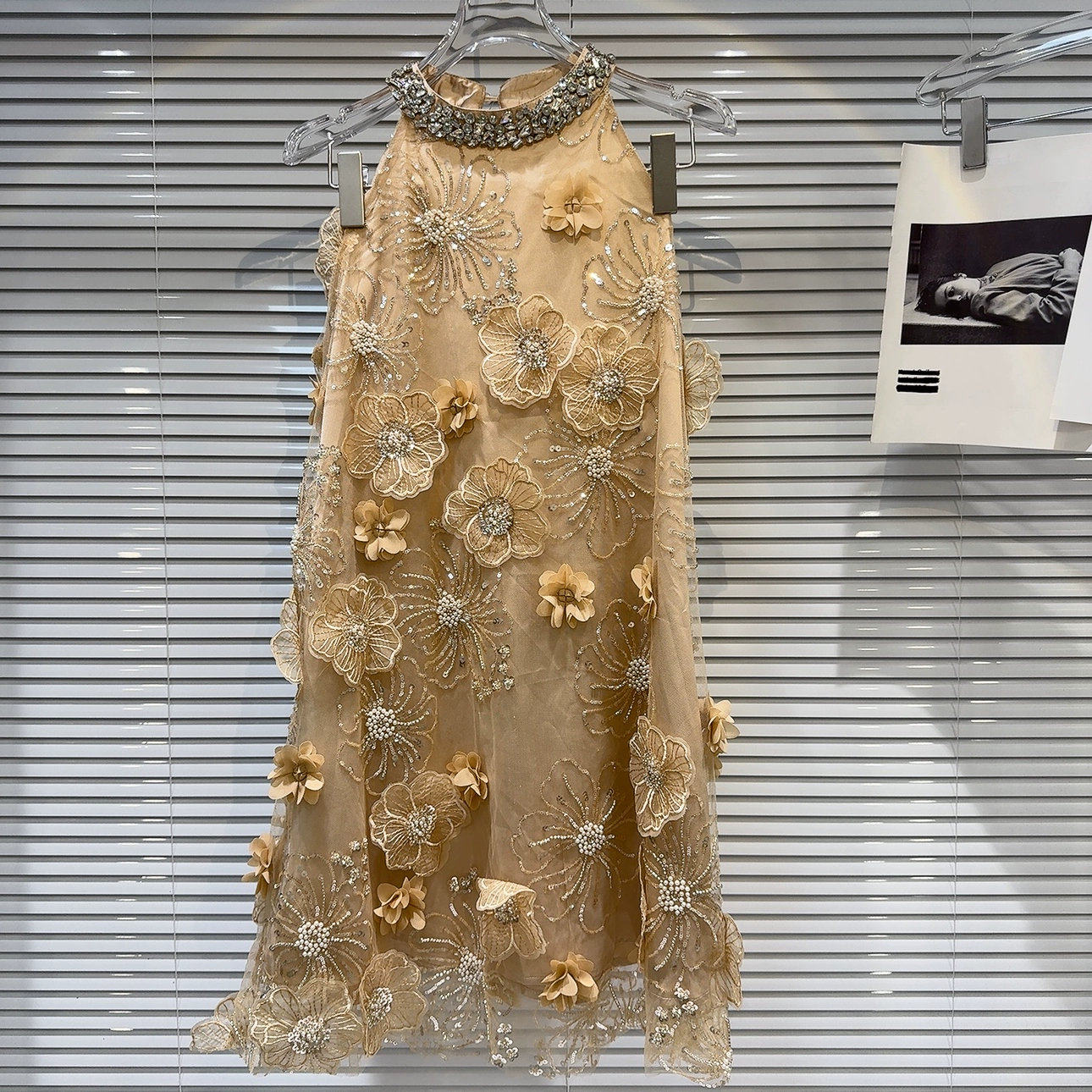 | nameOriginal | Internet celebrity's same 2024 new summer style small fragrant rhinestone beaded neckline flower temperament lady chiffon dress |