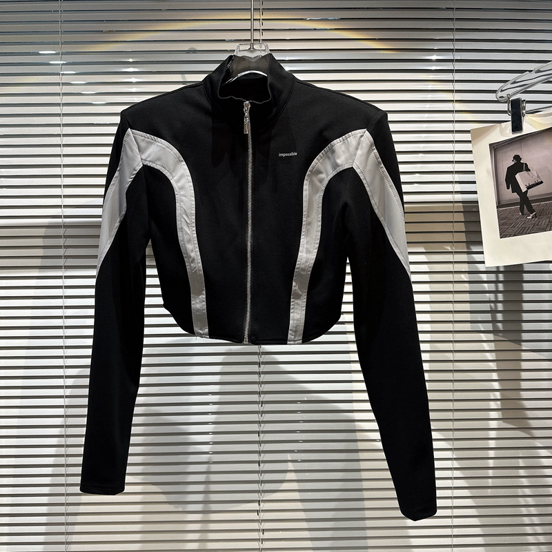 | nameOriginal | Internet celebrity's same 2024 summer new style cloth splicing design shoulder pads, stand collar, zipper sports slim short coat for women |