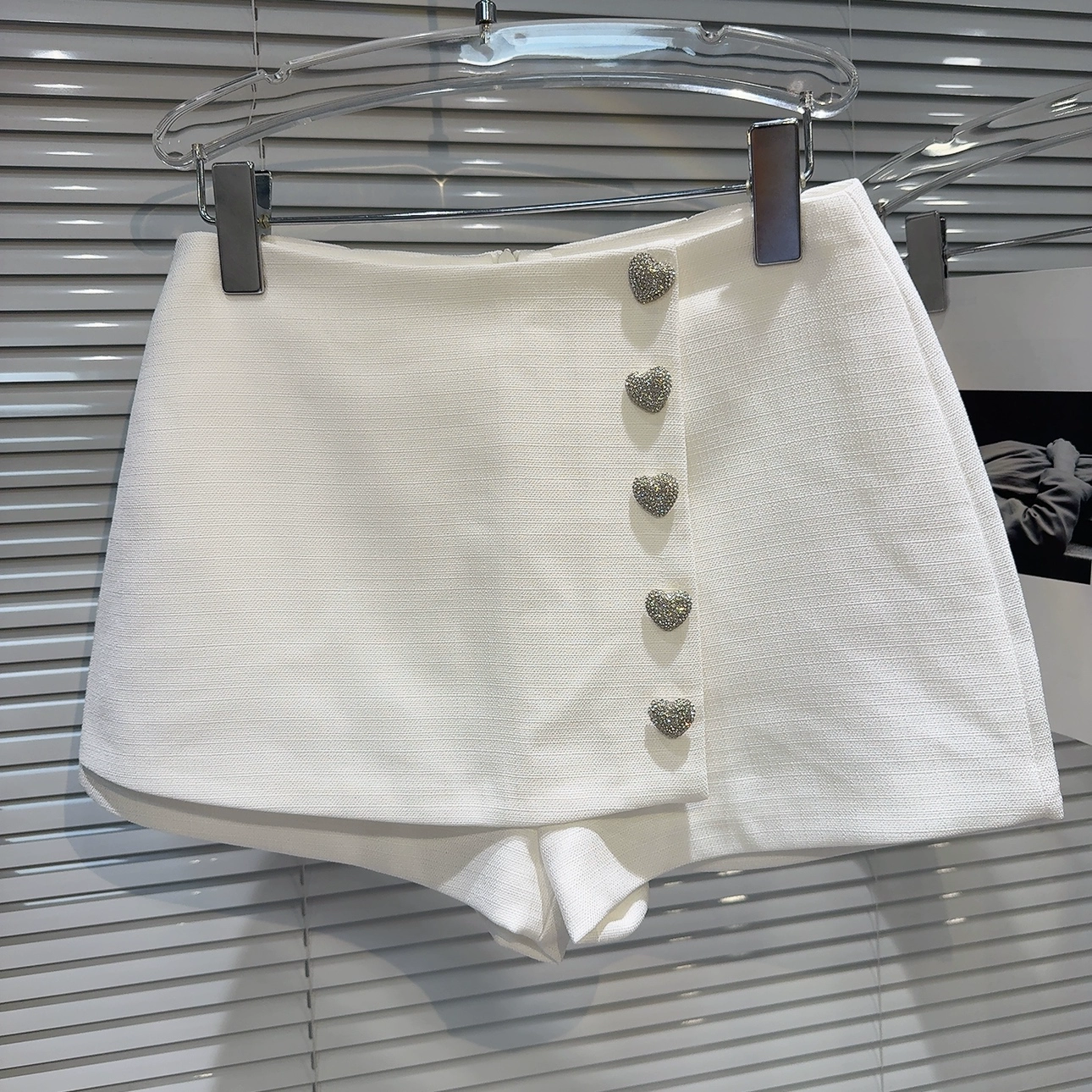 Internet celebrity’s same 2024 summer new style small fragrant style sweet rhinestone love buckle folding skirt hem three-quarter culottes shorts