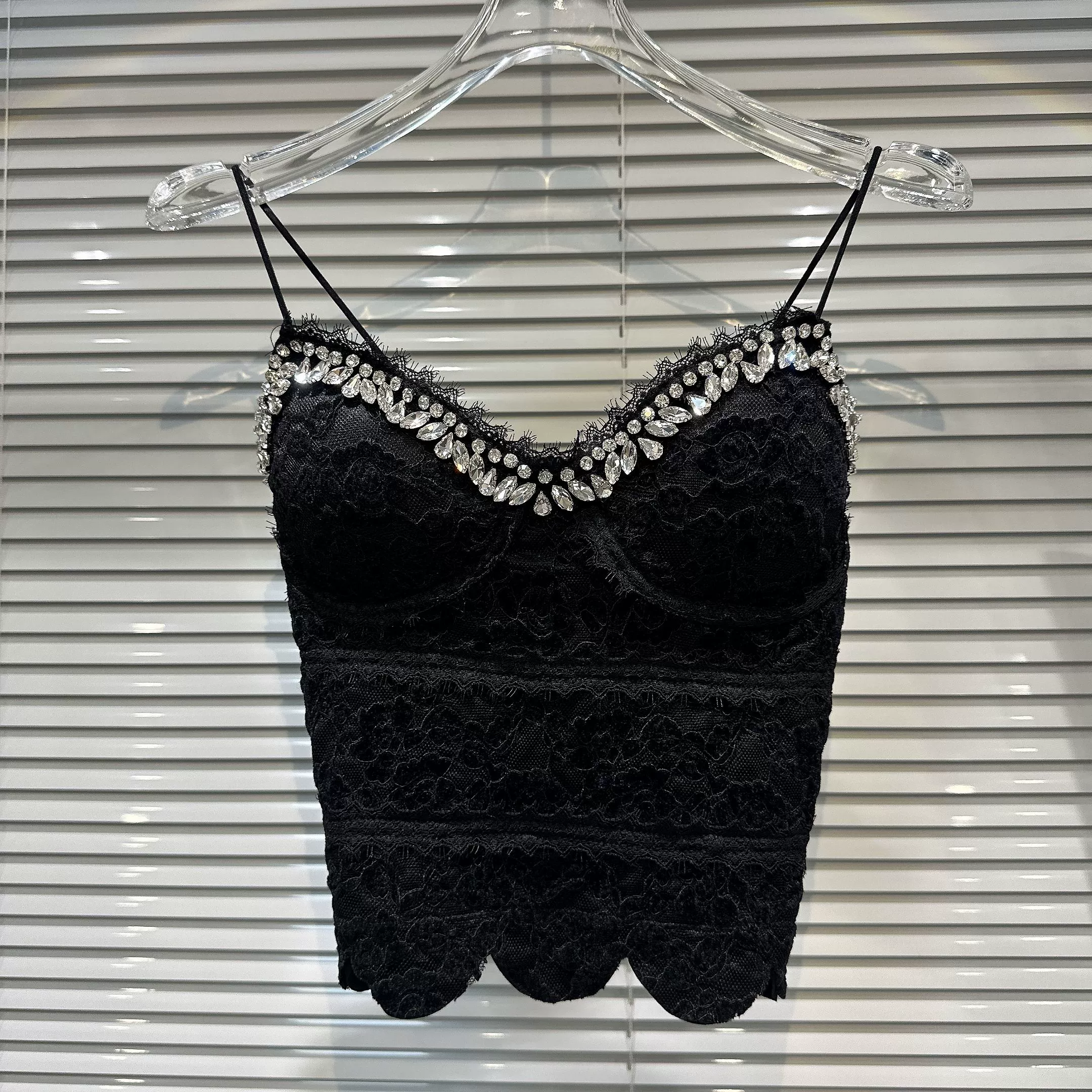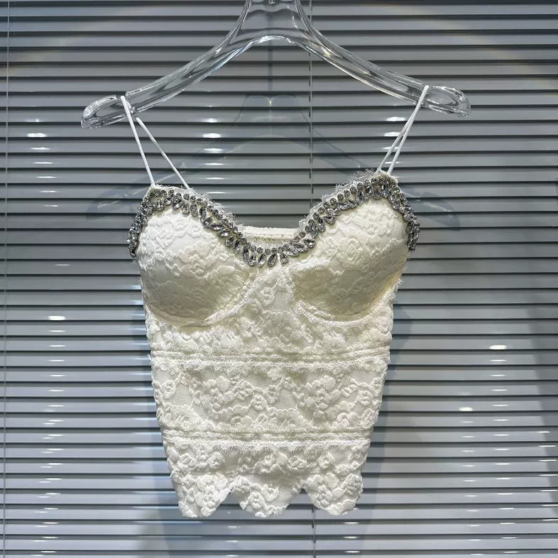 | nameOriginal | Internet celebrity's same style 2024 spring new style small fragrance fengshui rhinestone edge sexy lace slimming slim chest padded camisole |
