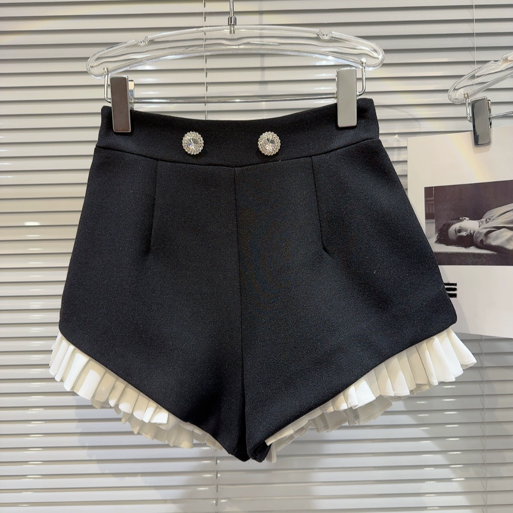 | nameOriginal | Internet celebrity's same style 2024 spring new style small fragrant rhinestone metal buckle pleated lace elegant lady shorts hot pants |