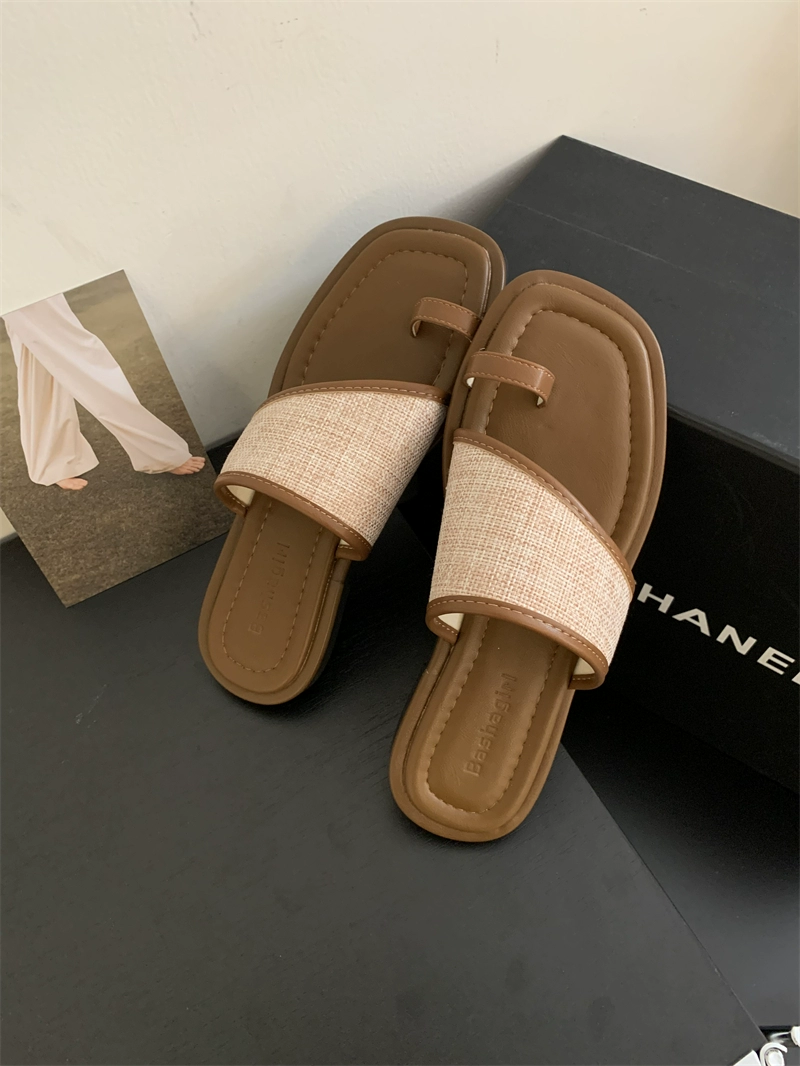 | nameOriginal | Internet celebrity's same style flat-soled flip-toe sandals for women, summer outer wear, beach vacation, beautiful outing beach slippers |