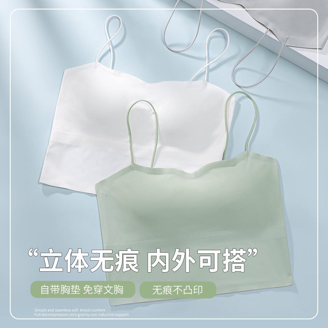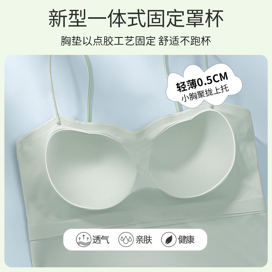 Internet-famous summer ice silk seamless sling with chest pad women’s inner fixed cup can be worn outside beautiful back underwear small vest for summer