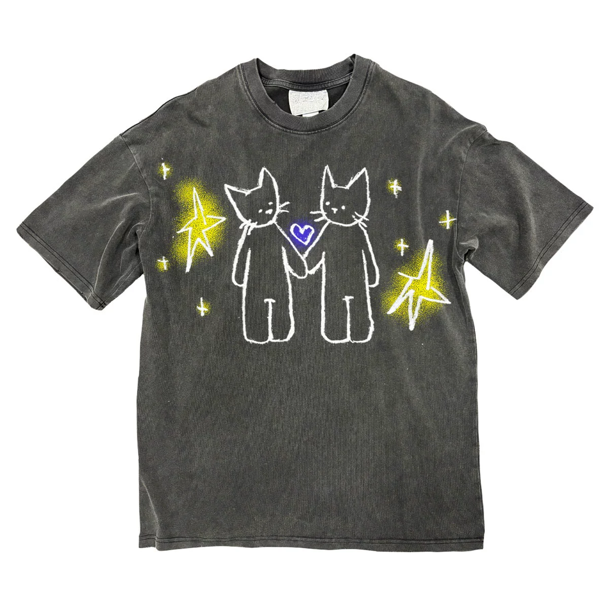 Internet homeless man doodle spray painting hand-painted couple rock music festival skateboards short sleeve rebellious