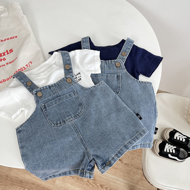 | nameOriginal | Internet Popular Summer New Arrival Baby Fashion suit Boys and Girls Thin T-Shirt Denim Strappy Pants |
