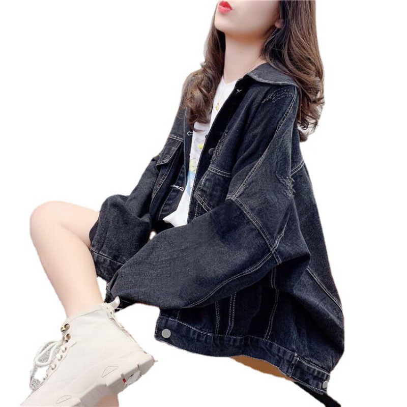 | nameOriginal | Internet red black cowboy coat women's spring and autumn new large size Korean version of loose Hong Kong style retro fashion |