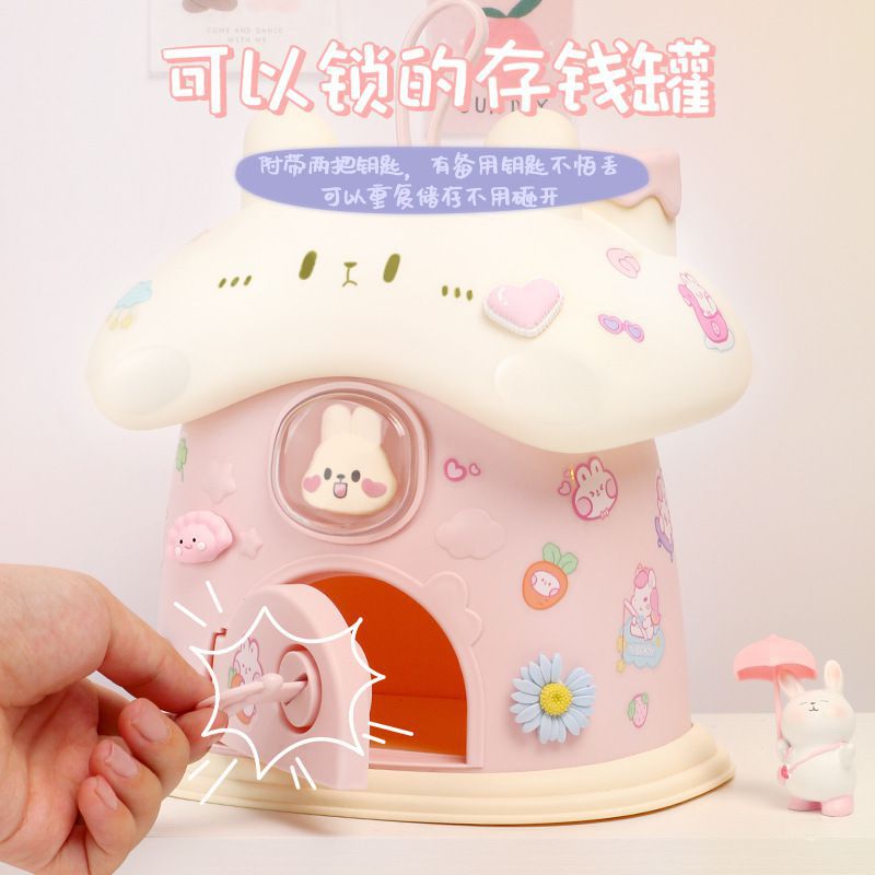 | nameOriginal | Internet red cartoon cute rabbit piggy bank children's creative small house desirable storage large capacity piggy bank |