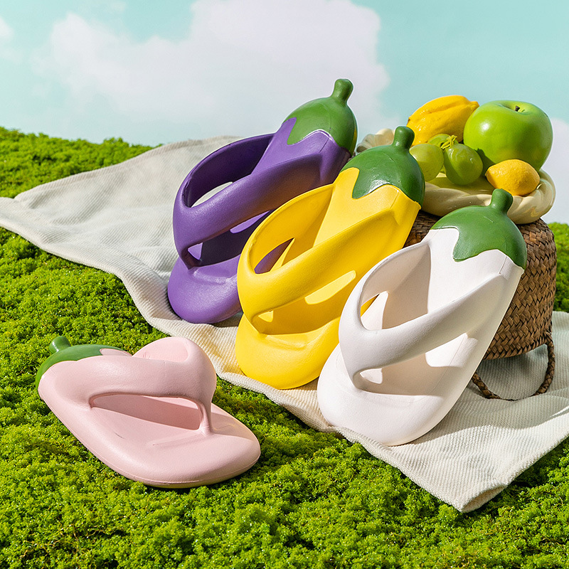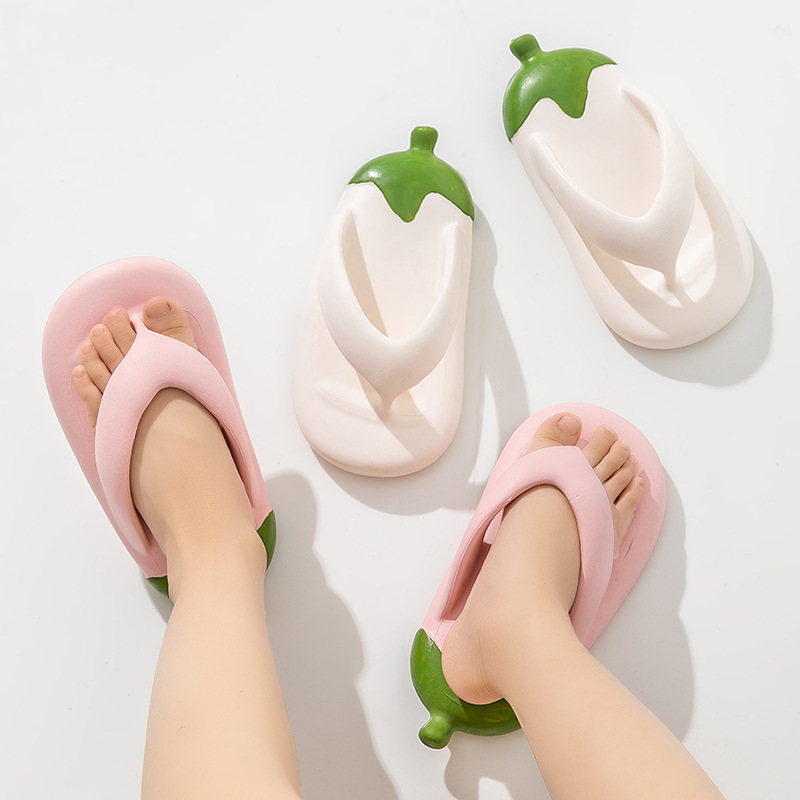 Internet Red Eggplant Thick Bottom Clip Flip-Flops Summer New Indoor and Outdoor Soft Bottom Stomp Feeling Bread Parent-Child Sandals