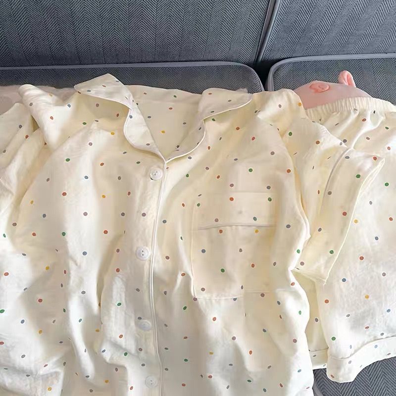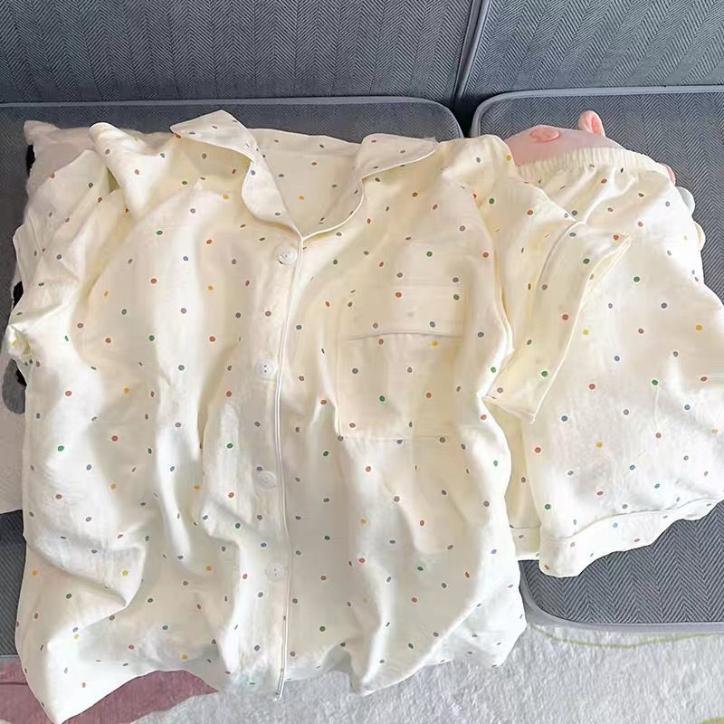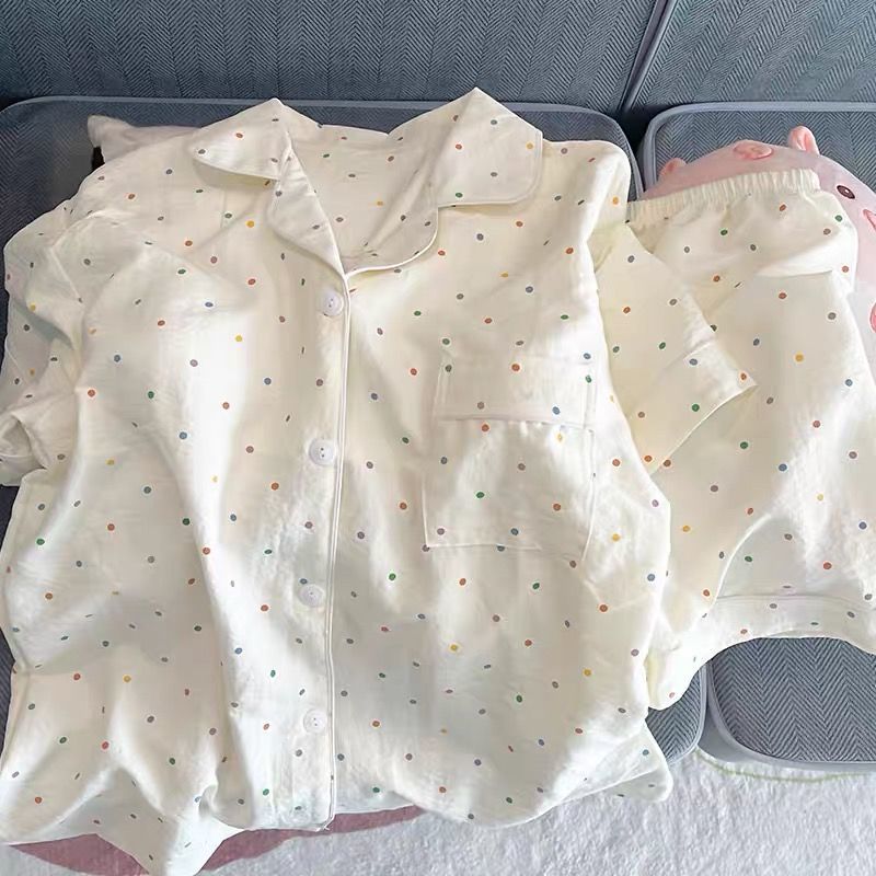 Internet Red Style Color Dot Pajamas Women’s Summer Short-sleeved Shorts Simple Student Dormitory Home Clothes Two-piece Outfit