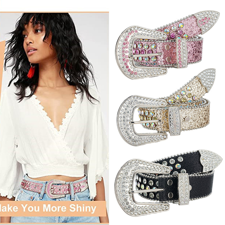 | nameOriginal | Internet Trending Jeans Accessories Belt Women's y2k Rhinestone Men's Belt Sequins Pearlescent Powder Ribbon Acrylic Cross Border |