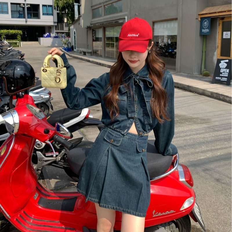 nameOriginal | Interpretation beauty NEWOPEN 2024 early spring new retro bow short temperament Denim coat female C0255 |