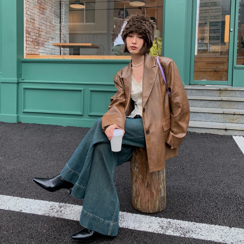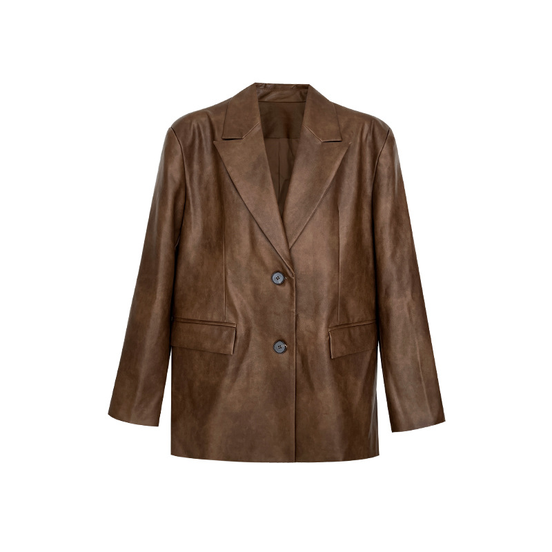 | nameOriginal | Interpretation of US NEW OPEN2023 Autumn Maillard Leather Coat Women's Retro Old Loose Suit 83038 |