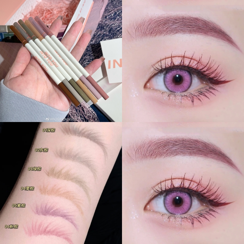 into you color eyebrow pencil ultra-fine tip waterproof and sweat-proof long-lasting non-fading green brown pink brown gray brown 6 colors