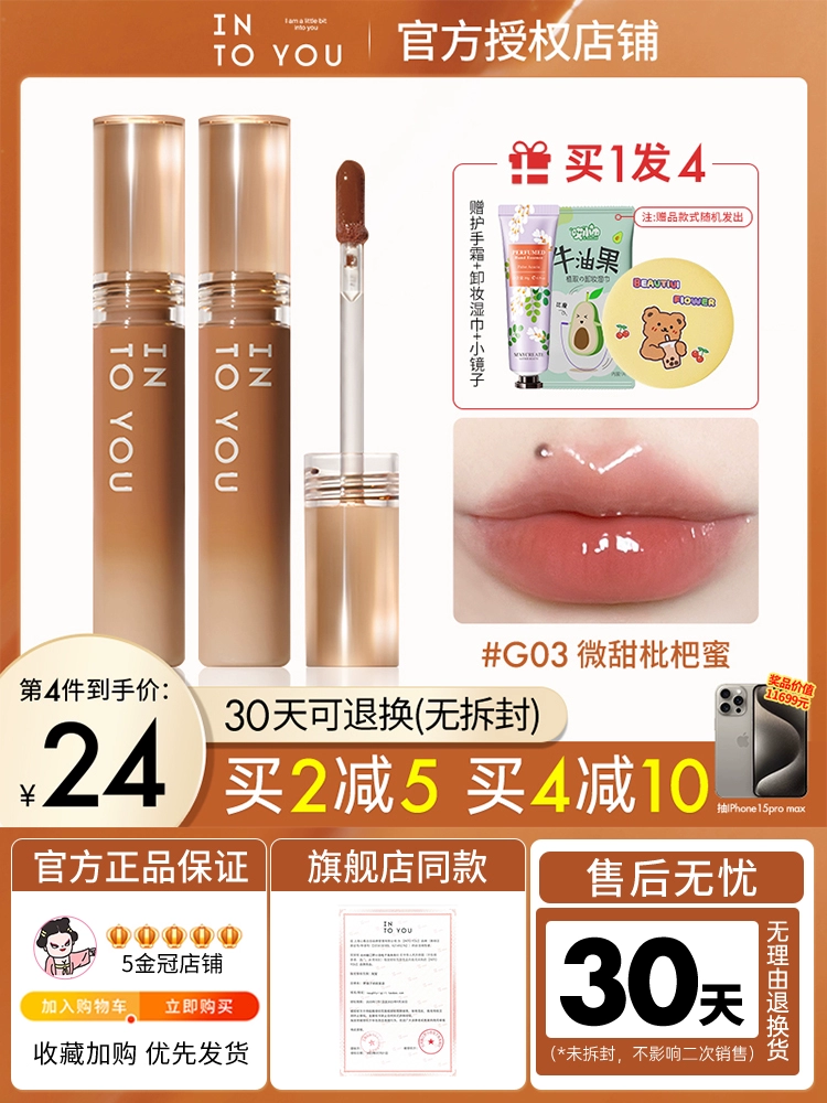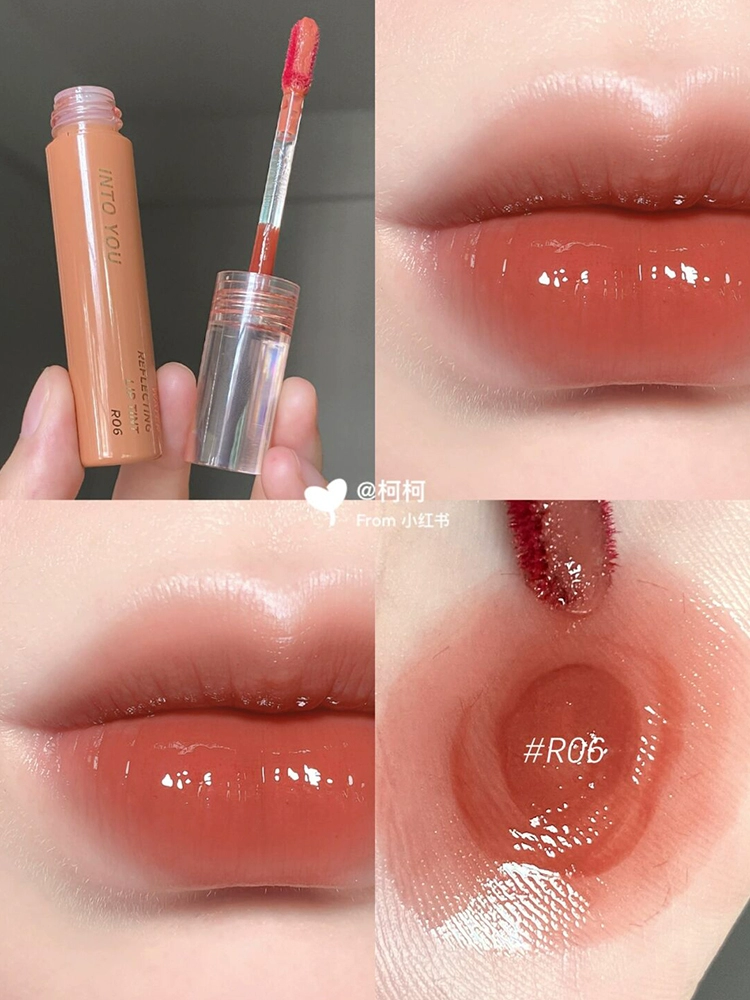 Into you Lip glaze lipstick brown syrup g04 water folding water light mirror glass lips intoyou female lip oil