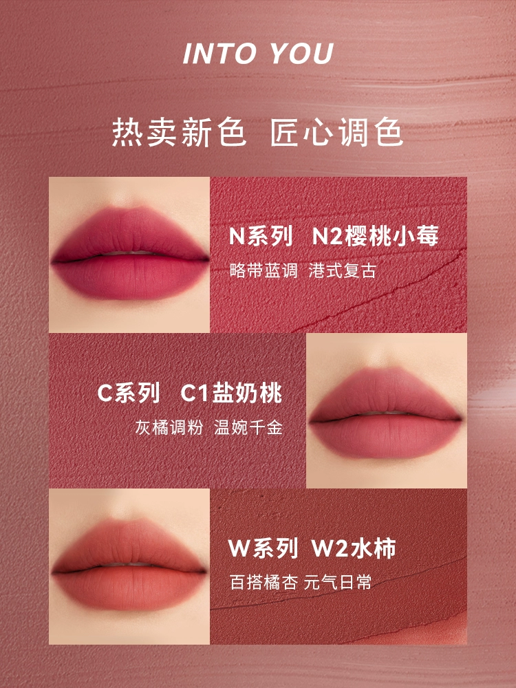 | nameOriginal | intoyou air lip mud lip gloss lip glaze matte moisturizing non-drying affordable heroine niche W9 lipstick W06 |