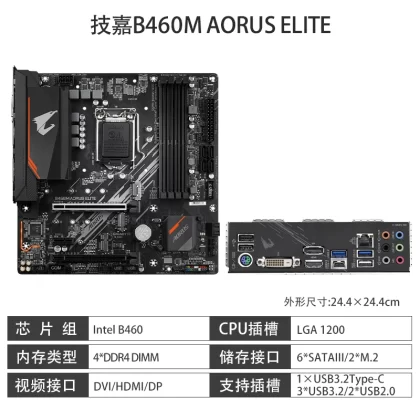 | nameOriginal | Inventory work package Gigabyte B460M AORUS ELITE Xiaodiao motherboard 1200-pin supports Intel 10th generation CPU |