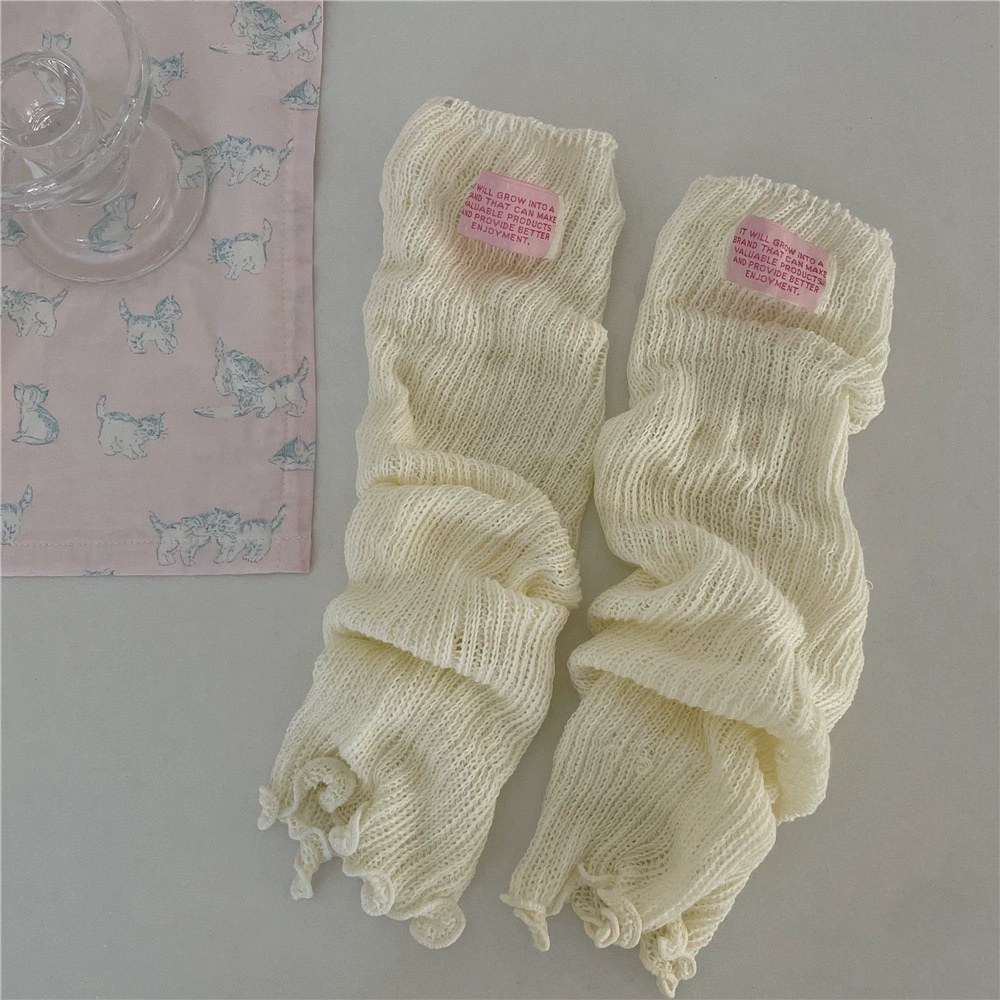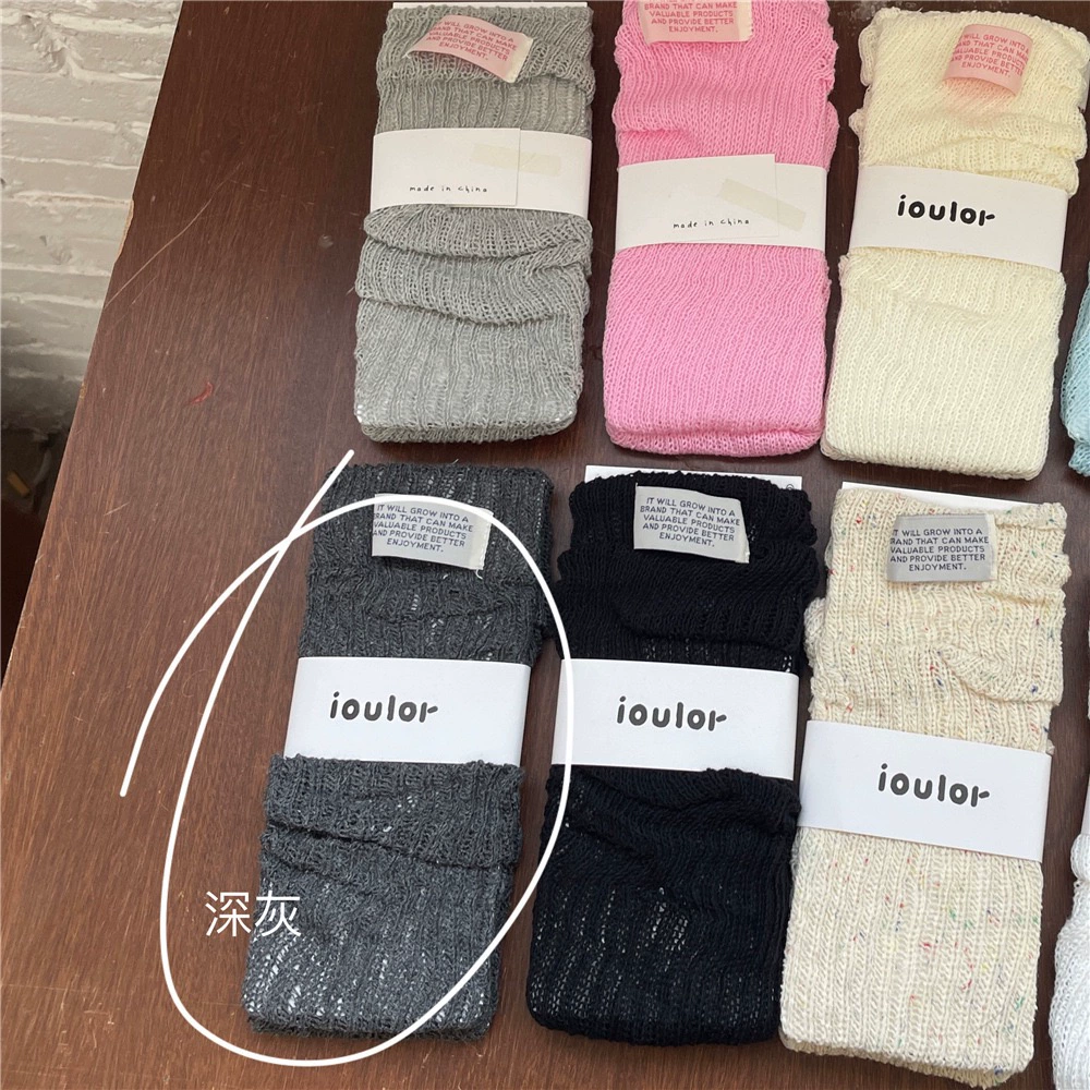 IOULOR dopamine cloth label pile socks spring and summer thin gray calf socks women’s Korean version hollow solid color leg sleeves