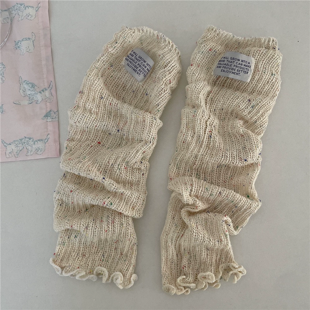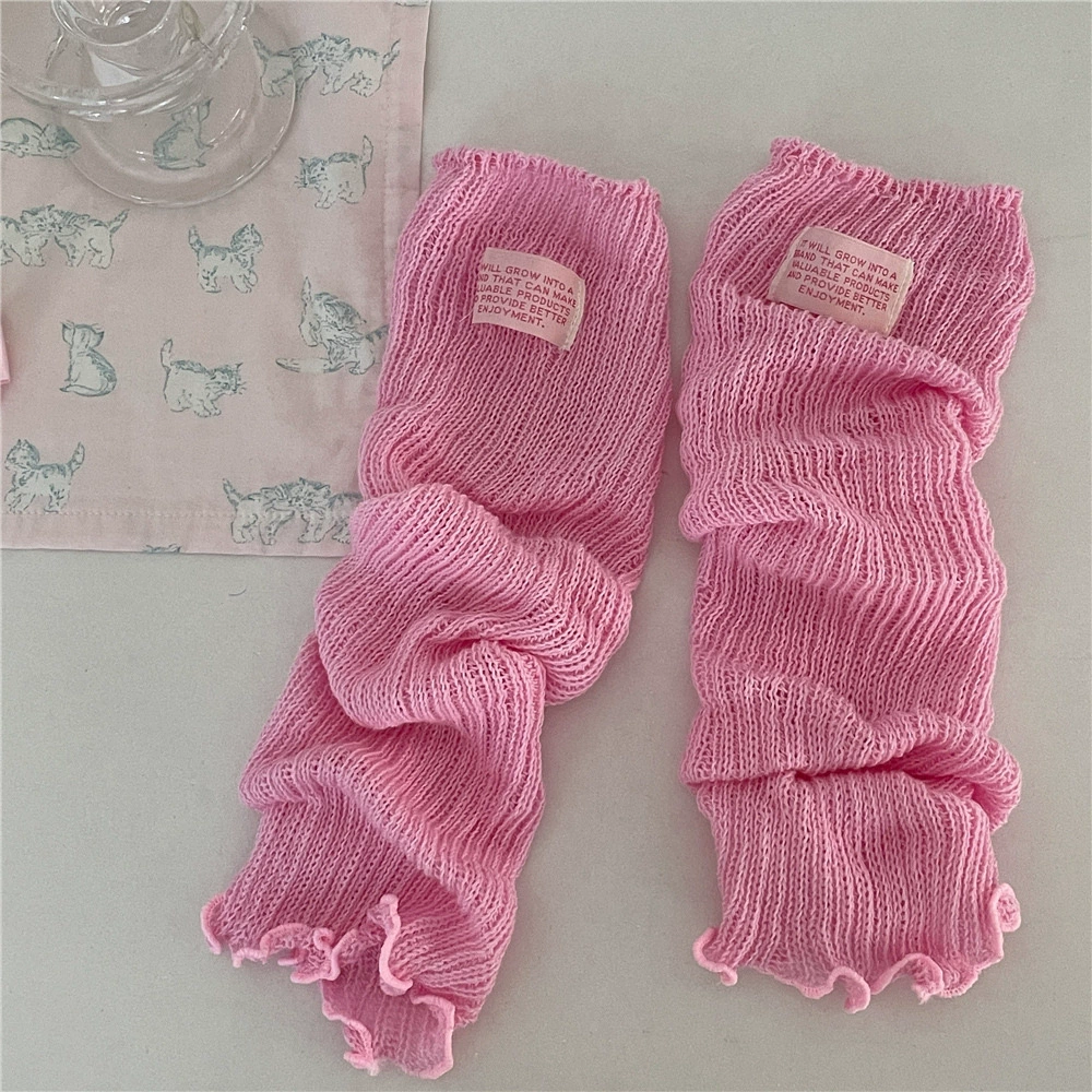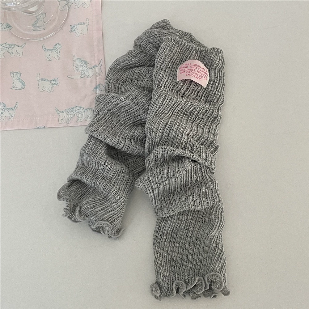 IOULOR dopamine cloth label pile socks spring and summer thin gray calf socks women's Korean version hollow solid color leg sleeves