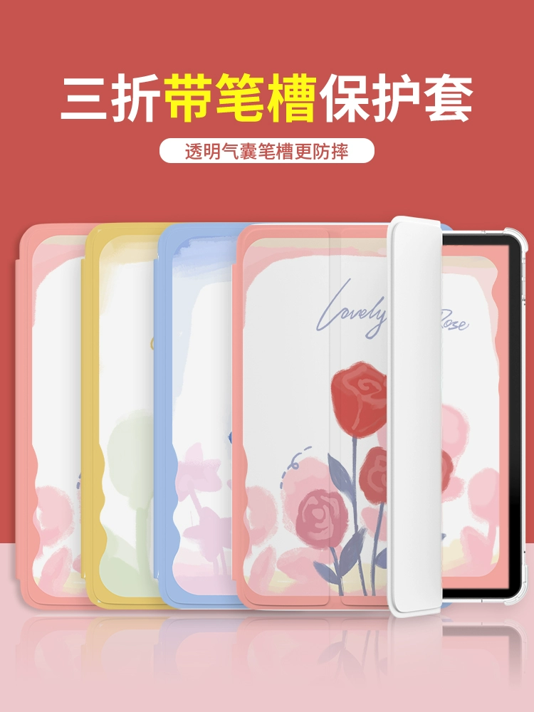 | nameOriginal | ipad protective case transparent silicone ipad9 new thin and light mini6 airbag anti-fall air5 apple tablet case 10.9 inches three-fold ipadpro tulip 2021 with pen slot 10. inch women |
