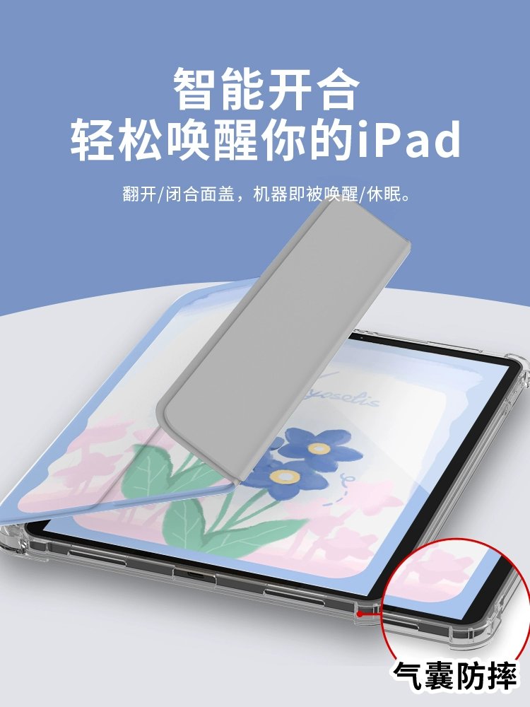 | nameOriginal | ipad protective case transparent silicone ipad9 new thin and light mini6 airbag anti-fall air5 apple tablet case 10.9 inches three-fold ipadpro tulip 2021 with pen slot 10. inch women |