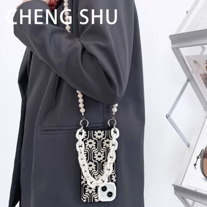 | nameOriginal | iphone14promax crossbody mobile phone case black silicone 15 millet flower retro style suitable for apple 13 mobile phone case backpack lanyard white xsmax wristband chain portable 8p female model |