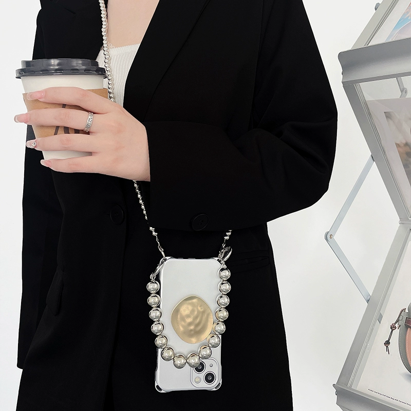 | nameOriginal | iphone14promax crossbody mobile phone case simple electroplated silver suitable for Apple 15 mobile phone case with metal sheet bracket 13pro backpack lanyard 8p portable chain ix cold style women |