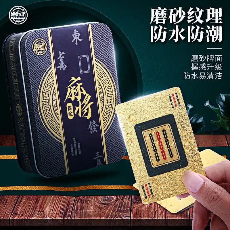 | nameOriginal | Iron Boxed Plastic Mahjong Card Gold Edition Poker Solitaire Mahjong Thickened Portable Frosted Travel Mahjong |