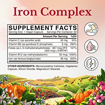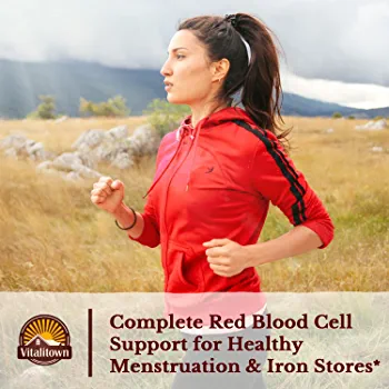 | nameOriginal | Vitalitown Iron Complex, Complete Blood Building Formula, P5P, Methyl Folate, Coenzyme B12, Red Blood Cell Support for Healthy Menstruation, Best Absorption with Vitamin C, Once Daily, 60 Vegan Caps |