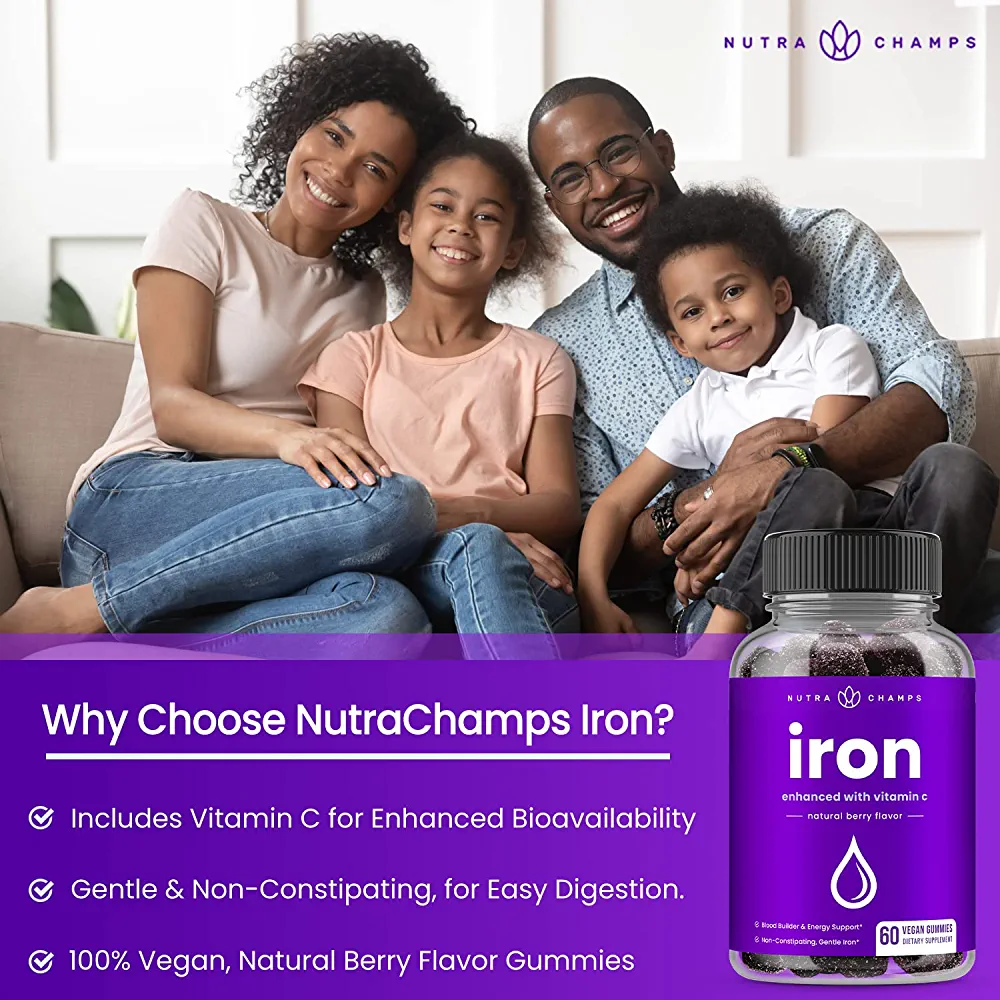 Iron Gummies with Vitamin C for Women, Men & Kids | 120 Blood Builder Supplement Gummies | Vegan & Energy Boosting (2 Pack)