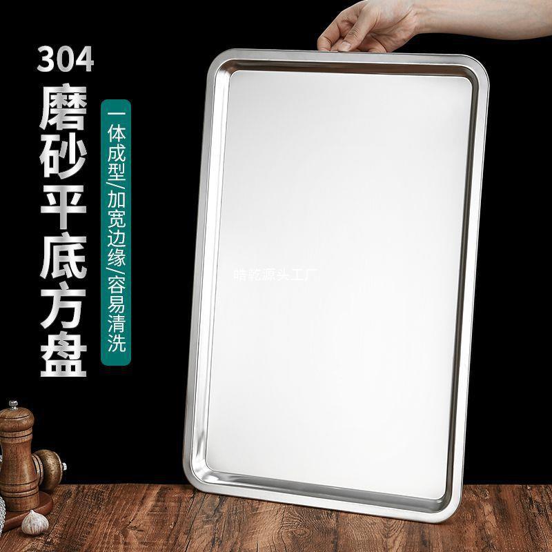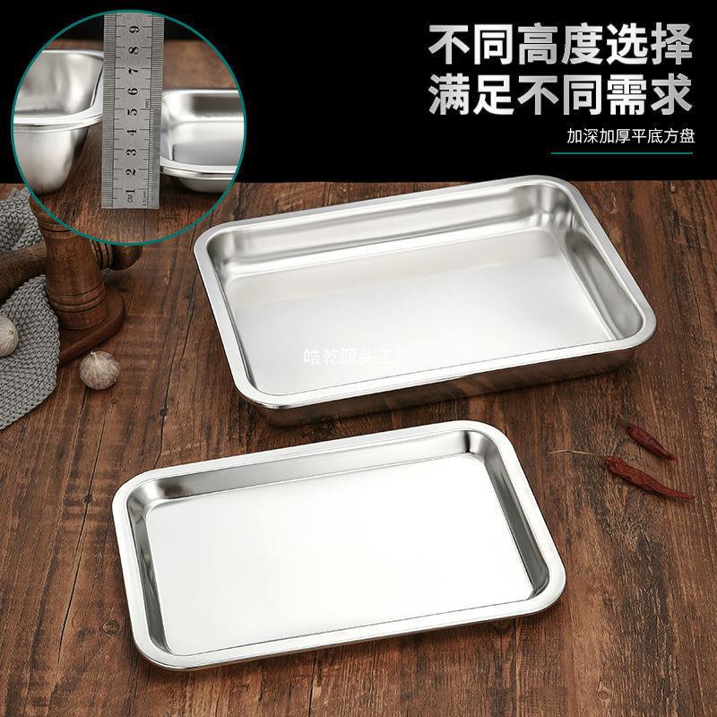 Iron tray 304 stainless steel square plate thickened rectangular tray barbecue plate steamed grilled fish dish flat plate