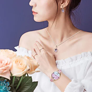 The Irovami 4pcs Women’s Watch Necklace Earrings Gift Set is the perfect fashion accessory for women and girls who love to make a statement. This set includes a stylish women’s watch, a beautiful necklace, and a pair of elegant earrings, all packaged in a chic jewelry gift box. The watch features a sleek and modern design with a durable stainless steel band and a quartz movement for accurate timekeeping. The necklace and earrings are crafted from high-quality materials and feature eye-catching designs that are sure to turn heads. This gift set is perfect for any occasion, whether you’re looking for a birthday gift, anniversary present, or just a special treat for yourself. With its stylish design and high-quality construction, the Irovami 4pcs Women’s Watch Necklace Earrings Gift Set is sure to become a cherished addition to any jewelry collection.
