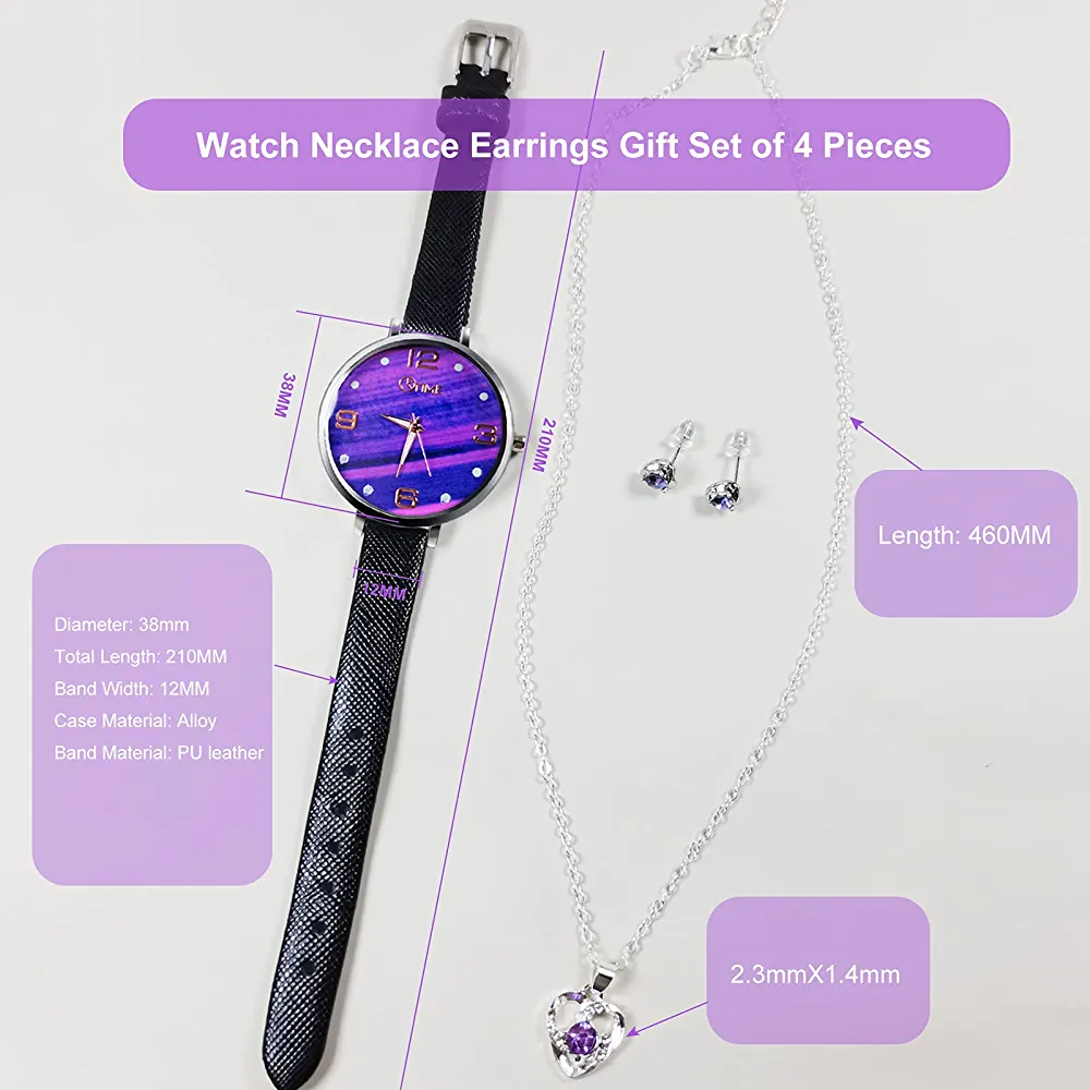 Watch, Irovami 4pcs Women's Watch Necklace Earrings Gift Set Fashion Women's Watch Box Jewelry Gift Set for Women Girls