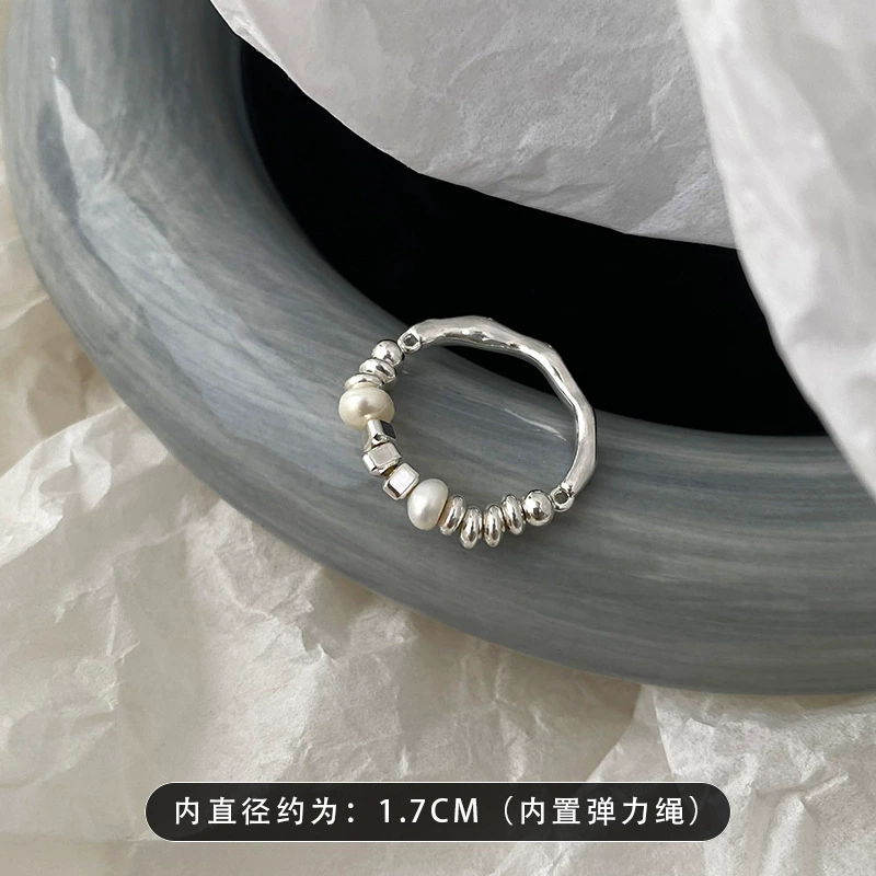 | nameOriginal | Irregular broken silver pearl ring for women handmade beaded elastic S925 silver ring ins niche internet celebrity index finger ring |