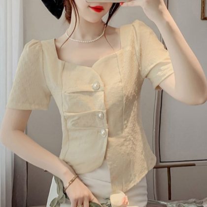 nameOriginal | Irregular Chiffon Shirt Women's Summer 24 New Design Sense Niche Western Style Small Shirt Slim-fit Slimming Short-sleeved Top |