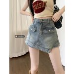 nameOriginal | Irregular Denim skirt women's summer American Retro hot girl Design high waist A- line hip skirt pants |