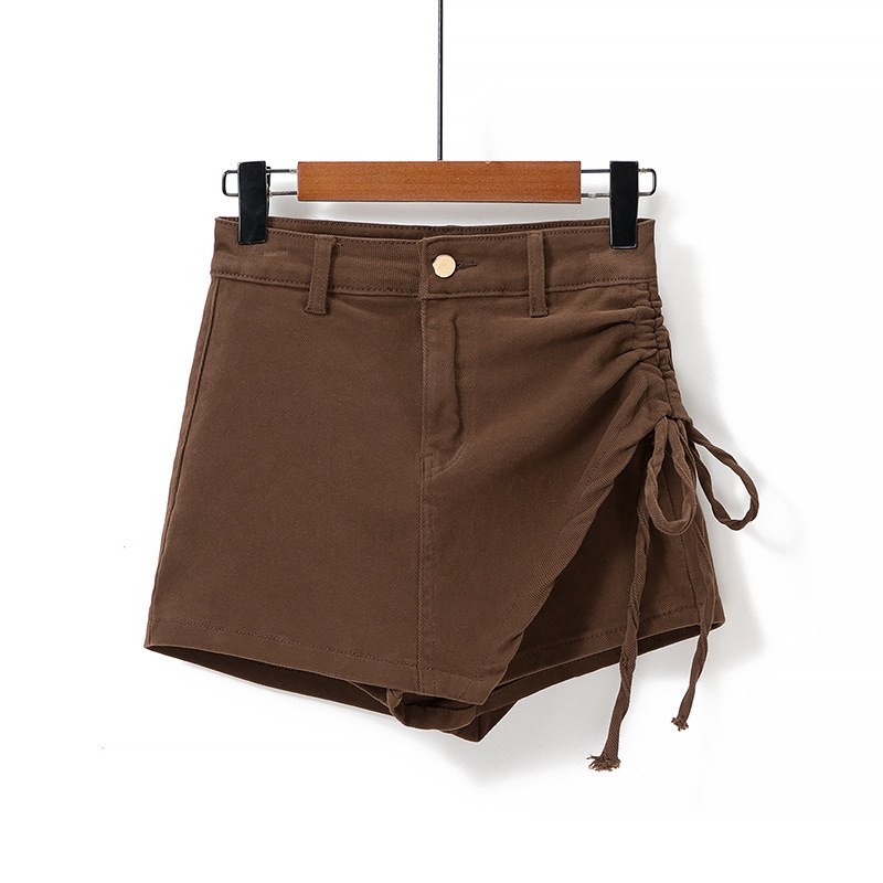 Irregular Drawstring Lace-up Pant Skirt Women's 2023 Summer New Anti-glare Elastic Slim-fit Hip Denim Shorts