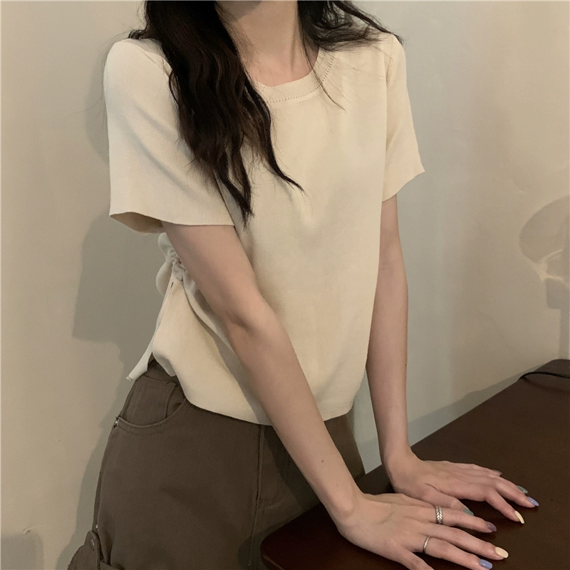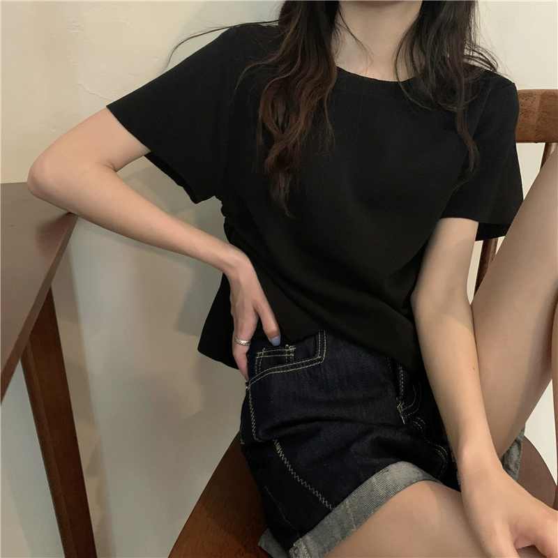Irregular drawstring loose chic top short-sleeved T-shirt