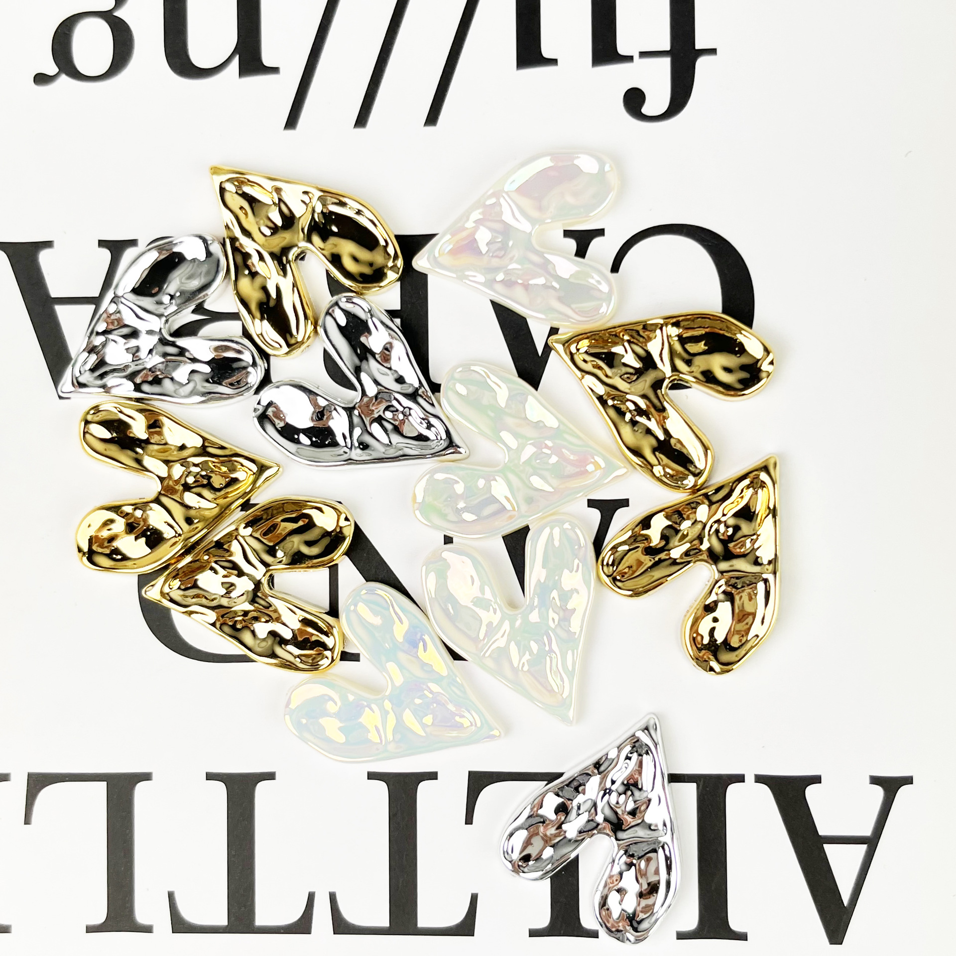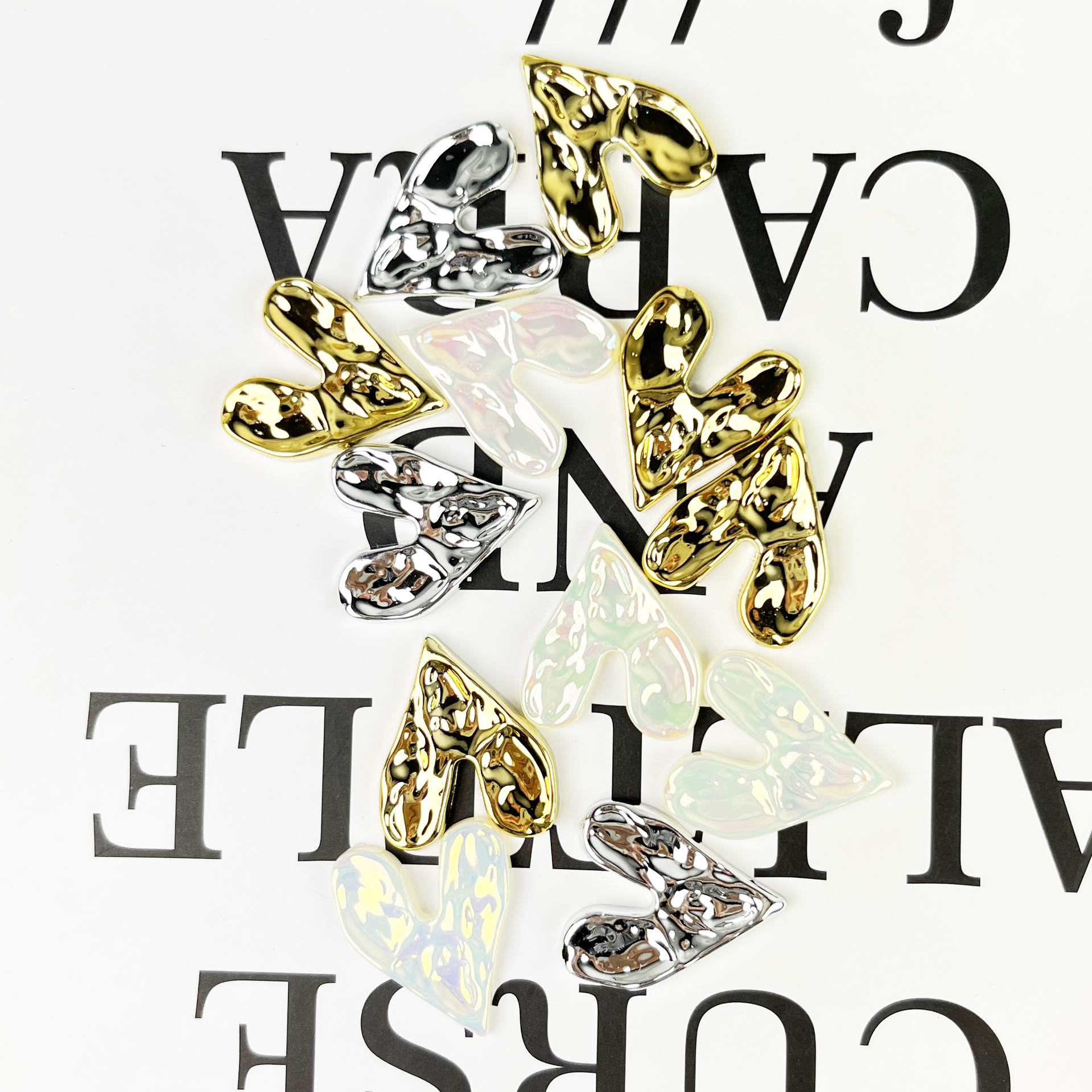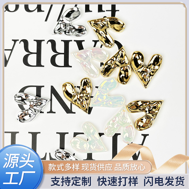 Irregular heart-shaped accessories gold and silver plating love resin material DIY mobile phone case fashion hair clip jewelry